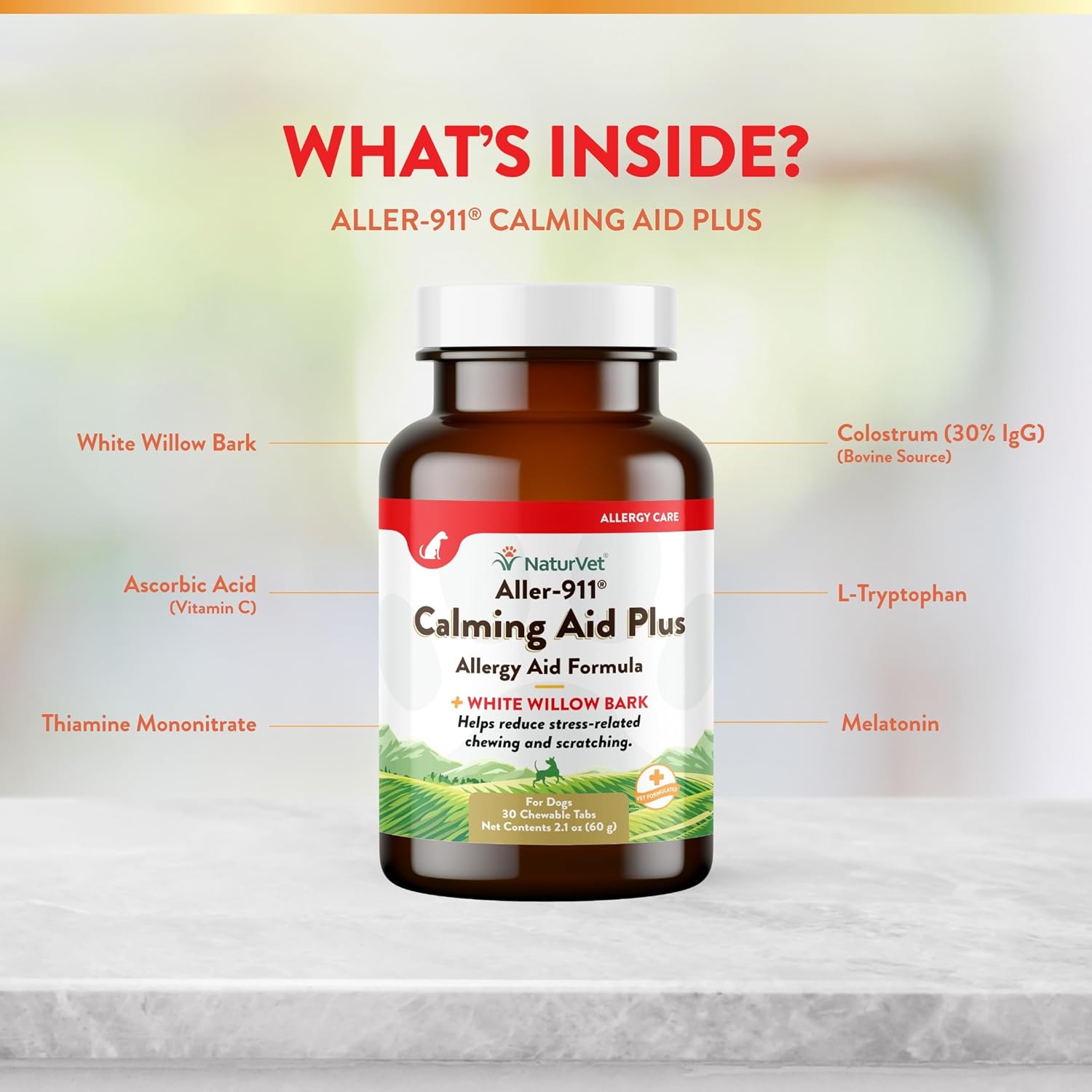 NaturVet Aller-911 Calming Aid & Allergy Aid Dog Supplement – Helps Reduce Stress, Minimize Seasonal Allergy Symptoms, Tension, Excessive Scratching - Includes Melatonin – 30 Ct.