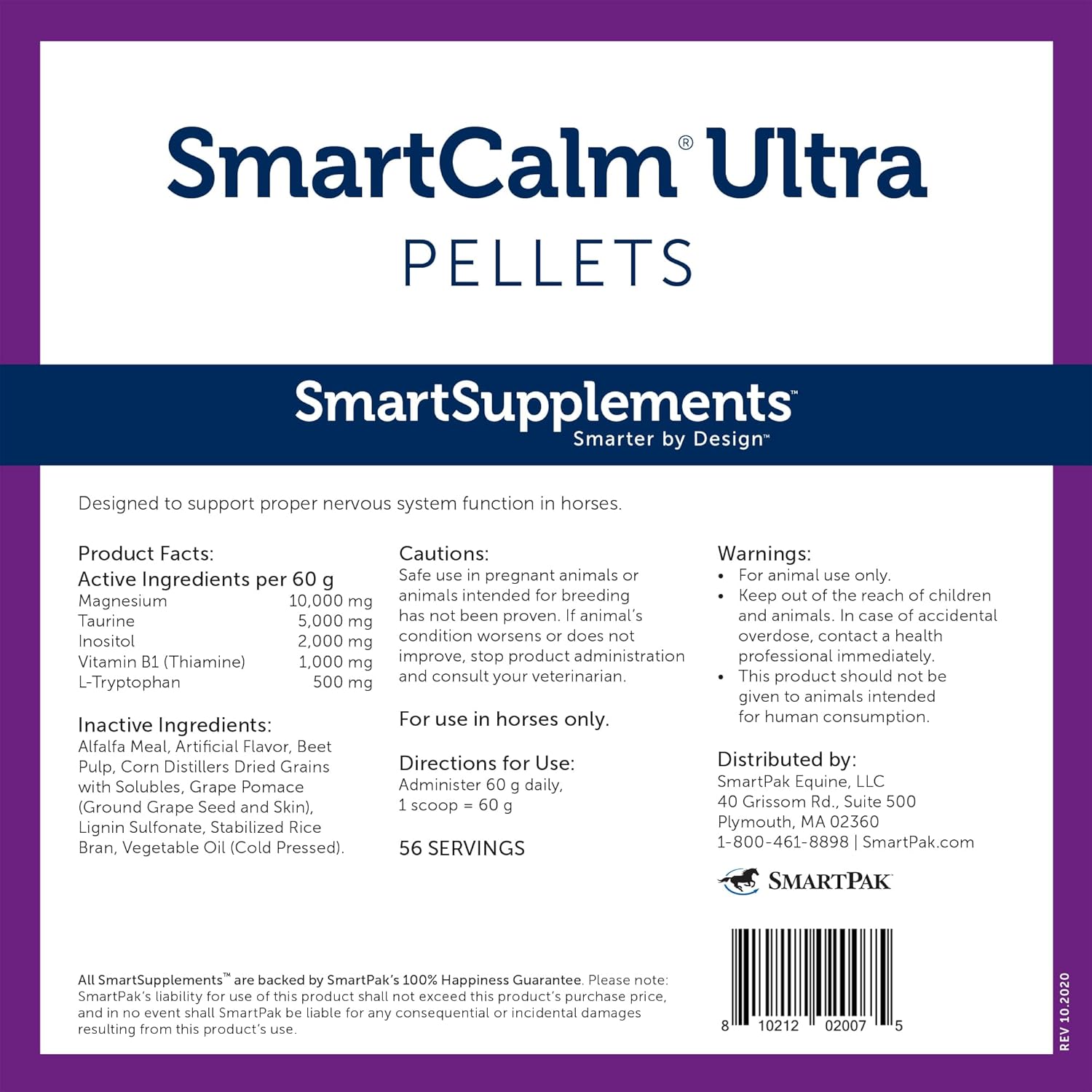 - SmartEquine Calming Supplements: Horses can become stressed in many situations, such as transportation, competition, or training; our SmartCalm Ultra Pellets calming supplement is designed to help protect your horse from the effects of stress and help settle into new environments and situations