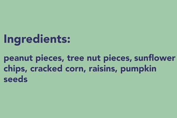 • Contains a mix of peanuts, sunflower chips, cracked corn, and pumpkin seeds