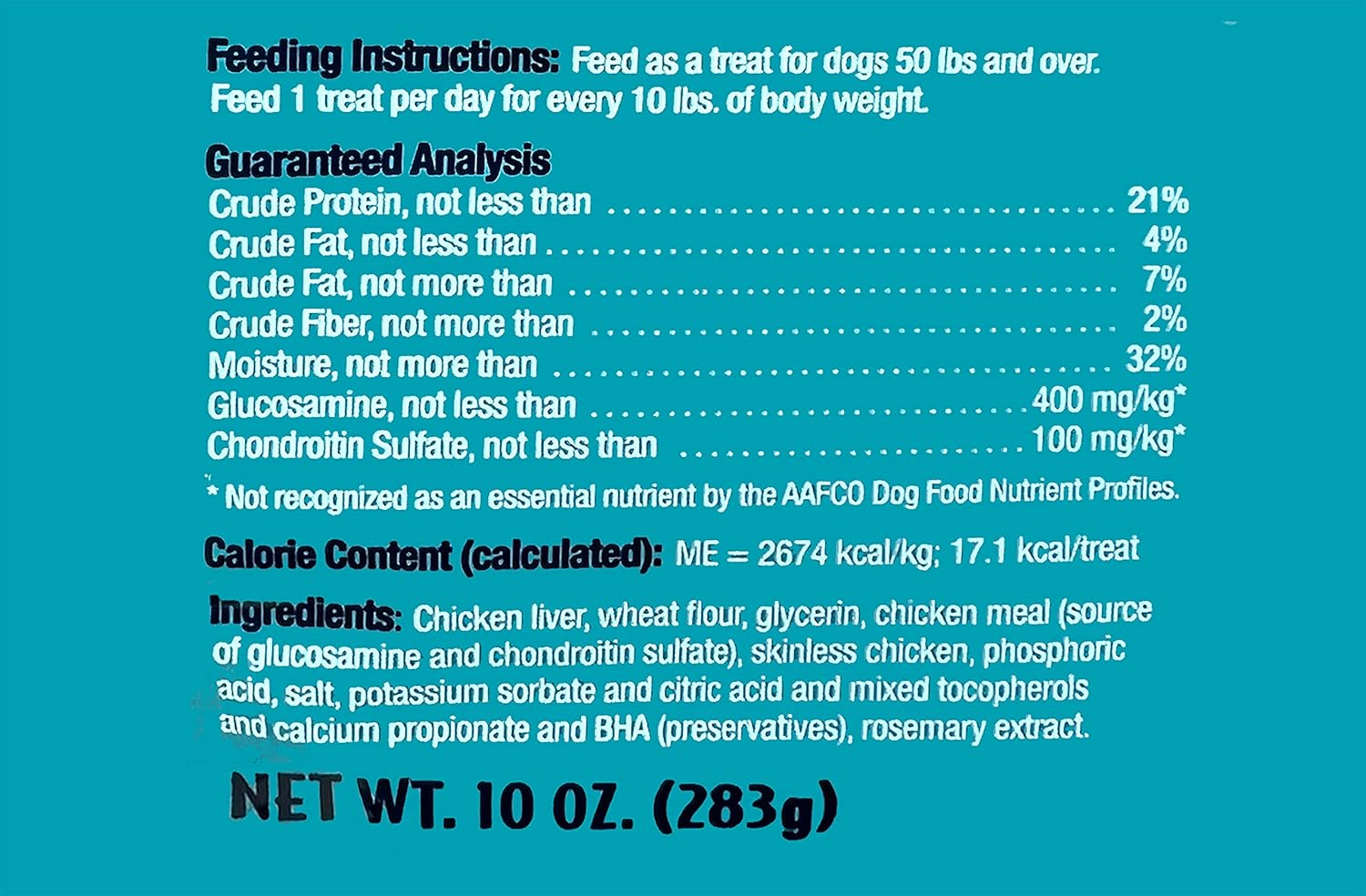 • Lean Treats for Large Breed Dogs contain glucosamine and chondroitin sulfate for supplemental purposes - not for therapeutic intentions