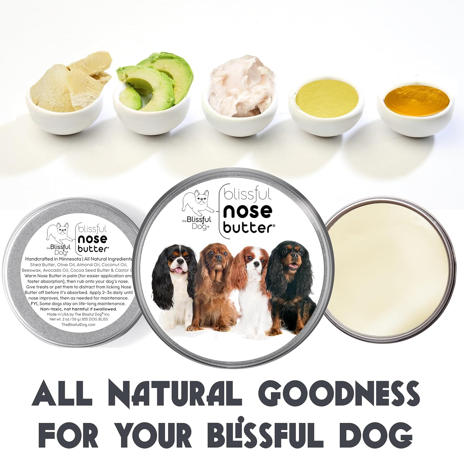 The Blissful Dog Cavalier King Charles Spaniel Nose Butter, Versatile Dog Nose Balm for Dry Nose, Handcrafted Nose Moisturizer, Easy-to-Apply Dog Essentials, Unscented, 2 oz.