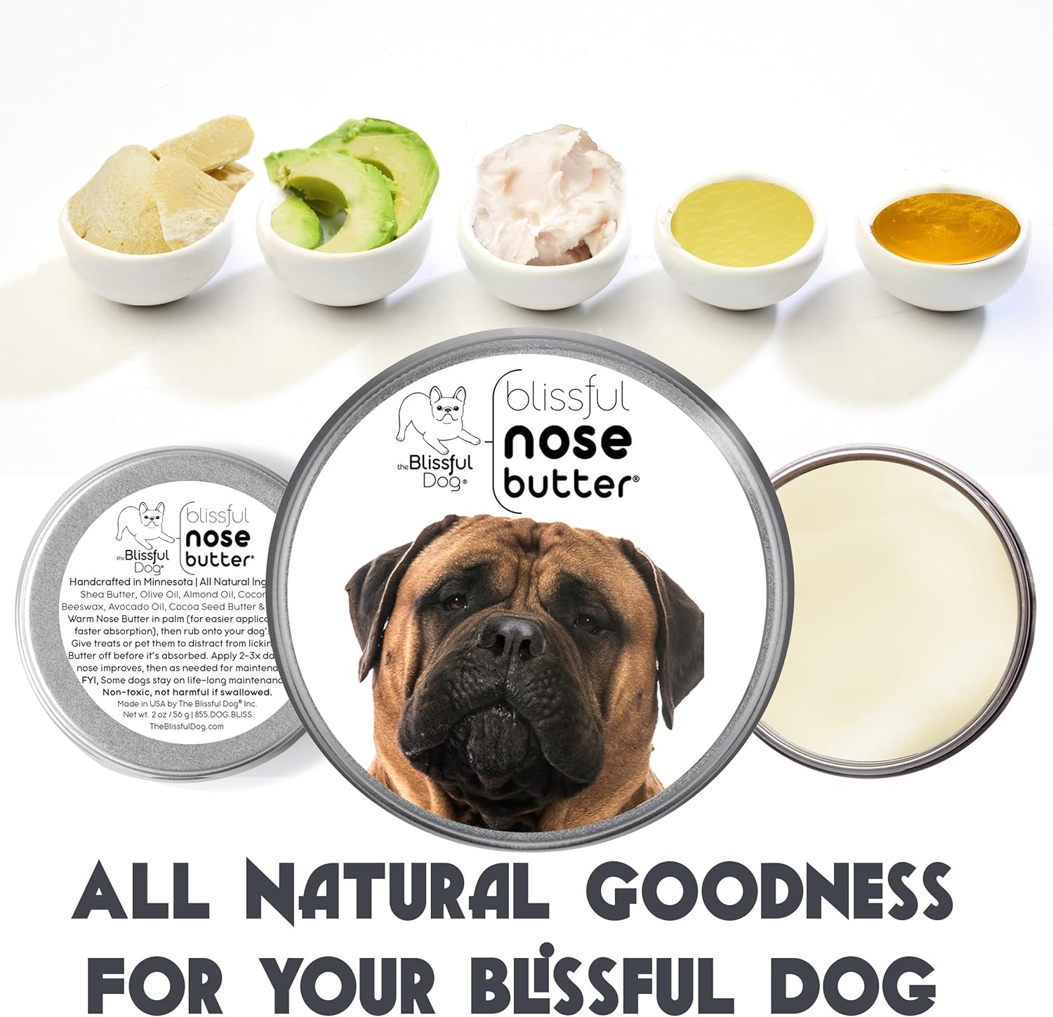 The Blissful Dog Bullmastiff Nose Butter for Dry, Cracked Skin, Lick-Safe Dog Nose Balm with Moisturizing Shea Butter, Almond, Olive, and Essential Oils, Pet Supplies, Uncented, 8 oz.