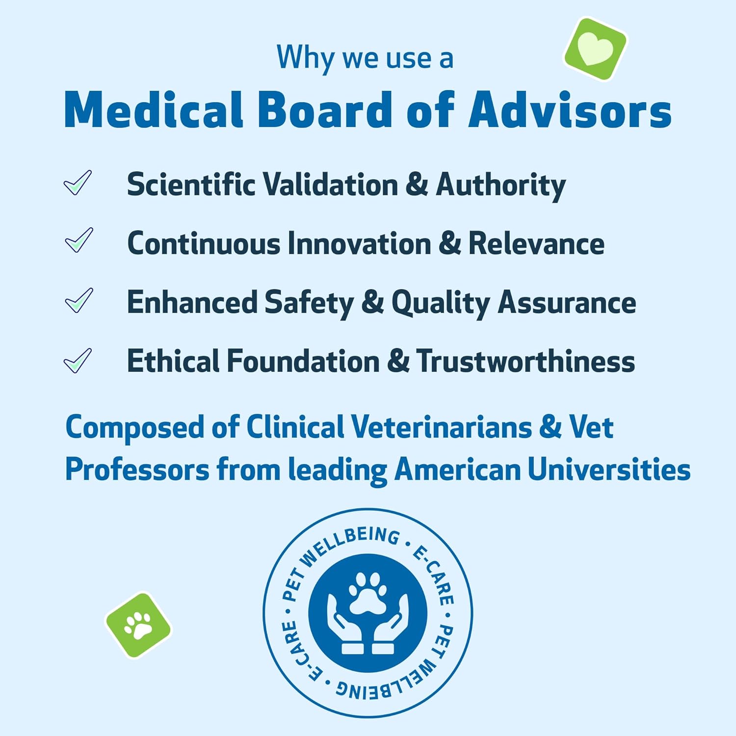 - Why Pet Wellbeing? Since 2001, millions of happy pet parents have trusted Pet Wellbeing. Our VET-FORMULATED supplements are proudly MADE IN THE USA with high-quality ingredients and rigorous testing. We use a Board of Advisors—leading veterinarians and professors—who meticulously craft our herbal formulas using science and traditional knowledge for maximum effectiveness.