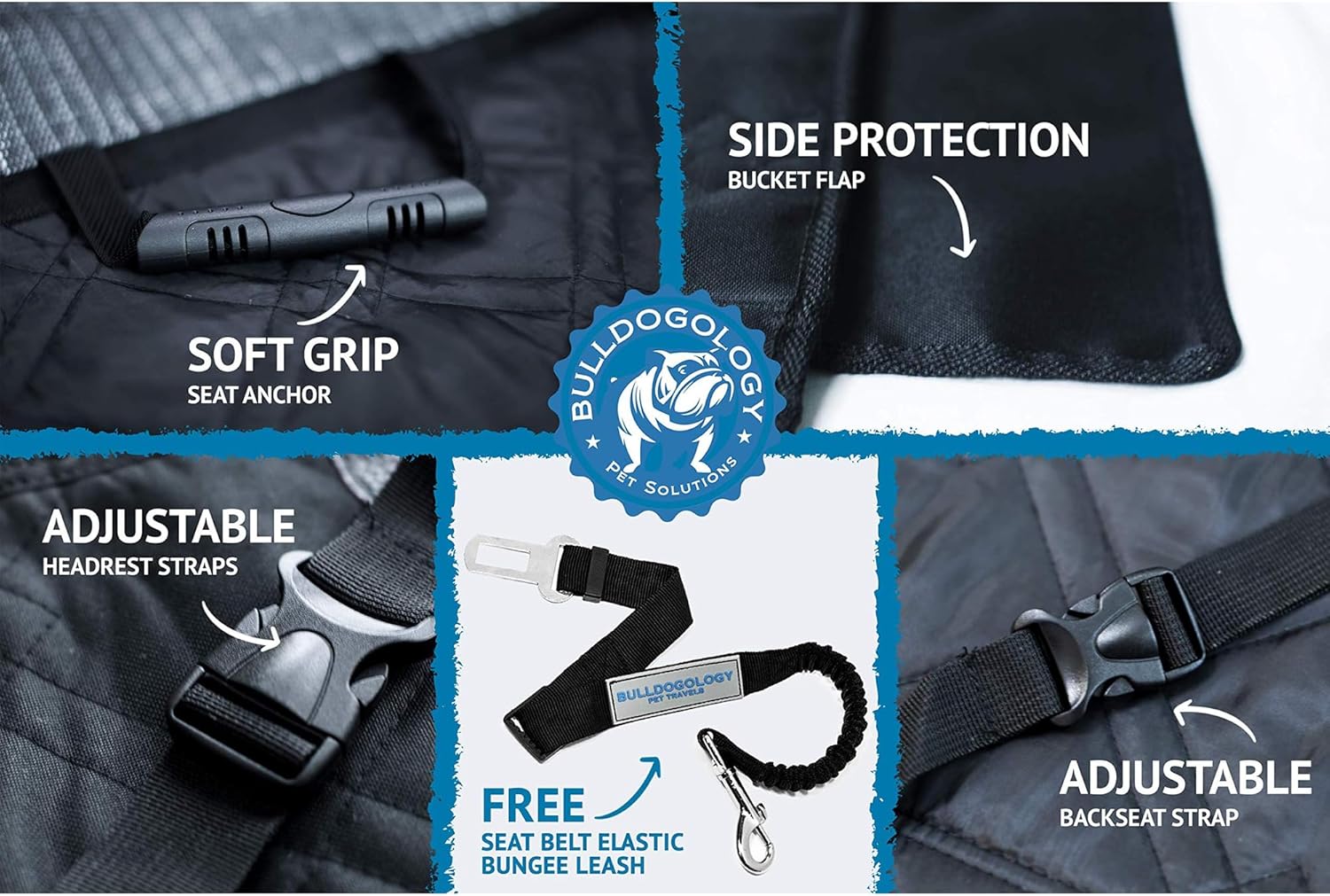 • Each Bulldogology front seat cover for dogs offers the highest-quality materials available, giving you a peace of mind with our No-Hassle 100% Satisfaction. This covers any defects and craftsmanship. Expect only the best! Enjoy your dog travel without the stress.