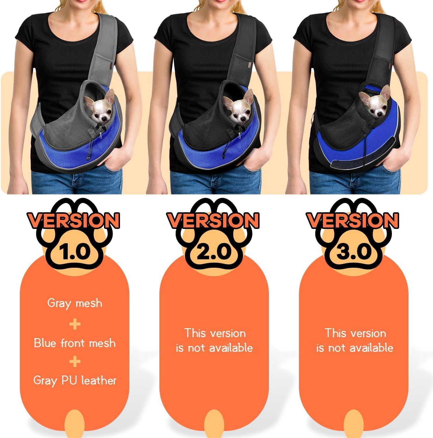 YUDODO Pet Sling Carrier for Small Dogs & Cats – Hands-Free Puppy Carrier with Safety Hook, Large Zipper Pocket, Soft Breathable Mesh, Adjustable Strap & Reflective Strip (Blue 1.0 S)