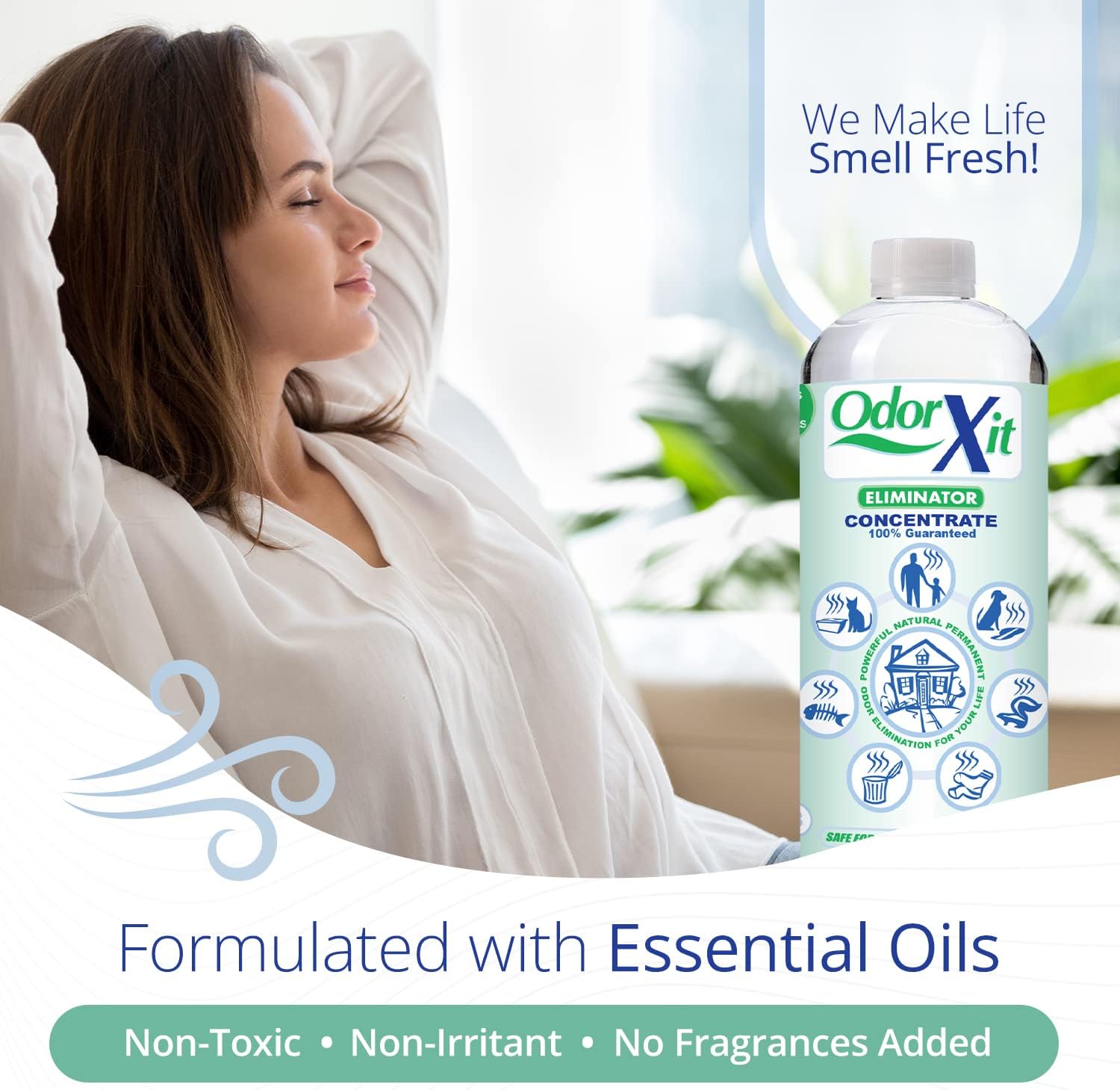 - Natural & Safe: Our Odor Eliminator for Strong Odor is made with essential oils and other natural ingredients; You can safely and easily use it on and around pets and children; Rest assured OdorXit can be sprayed onto skin and pet fur, and even around birds