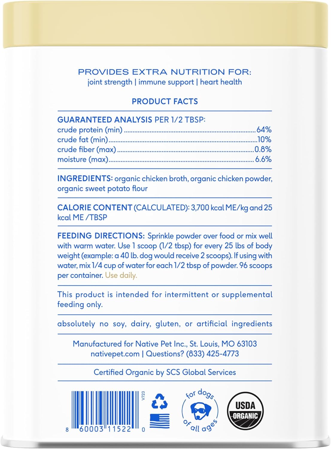Native Pet Bone Broth for Dogs and Cats - Chicken Bone Broth Powder Dog Food Toppers for Picky Eaters - Provides Extra Nutrition for Joint Strength, Immune Support & Heart Health - 96 Scoops