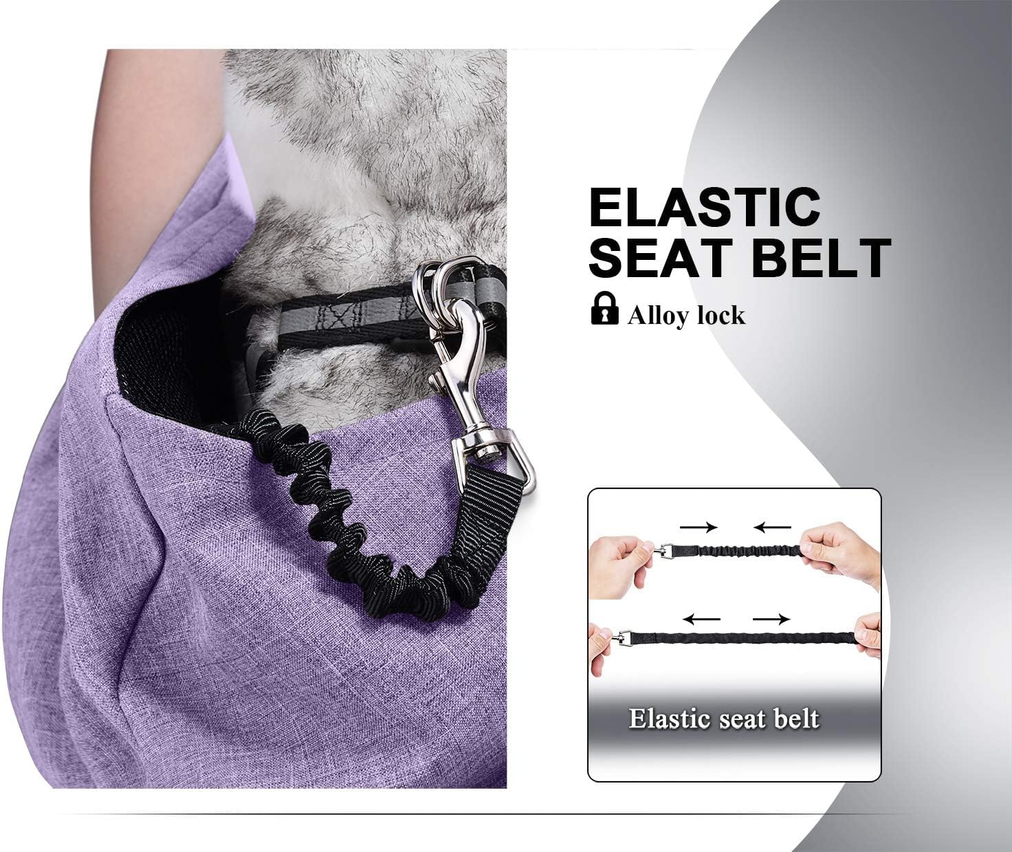 • Double protection device for safety buckle and safety mesh. Apply the harness or collar to the pet to prevent from jumping out suddenly. The safety buckle is connected with the spring rope, which plays a role of buffer and protection when the pet accidentally jumps out of the pet bag and reduces the shock to the pet . The opening of the net is adjustable , and the adjusting buckle is placed on the back of the pet , which is convenient for adjusting and is not easy to hurt the pet .