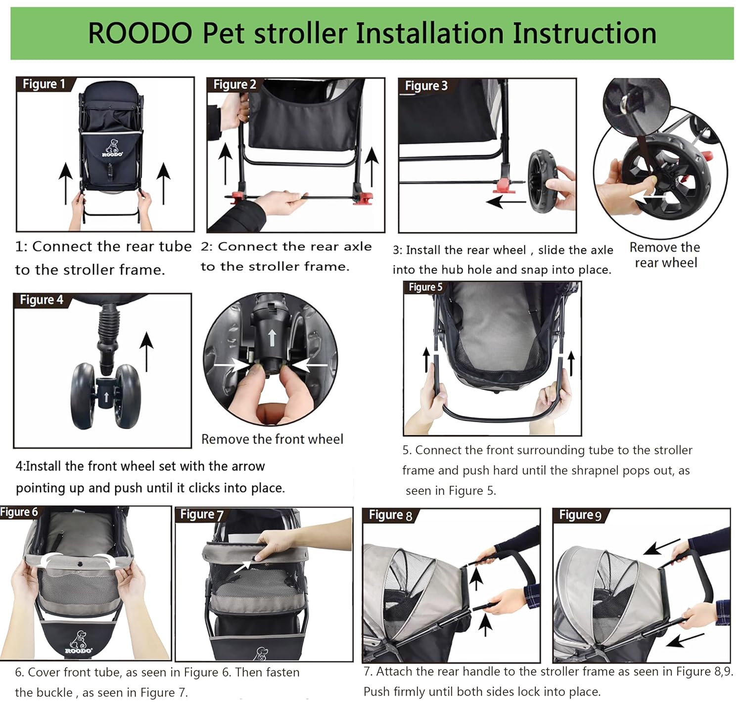 - ROODO Escort 3 Wheel Pet Stroller,have been upgraded front wheel and rear wheels can be quickly installed and removed without tools,The installation of the front and rear wheels will be easier and fasterγ