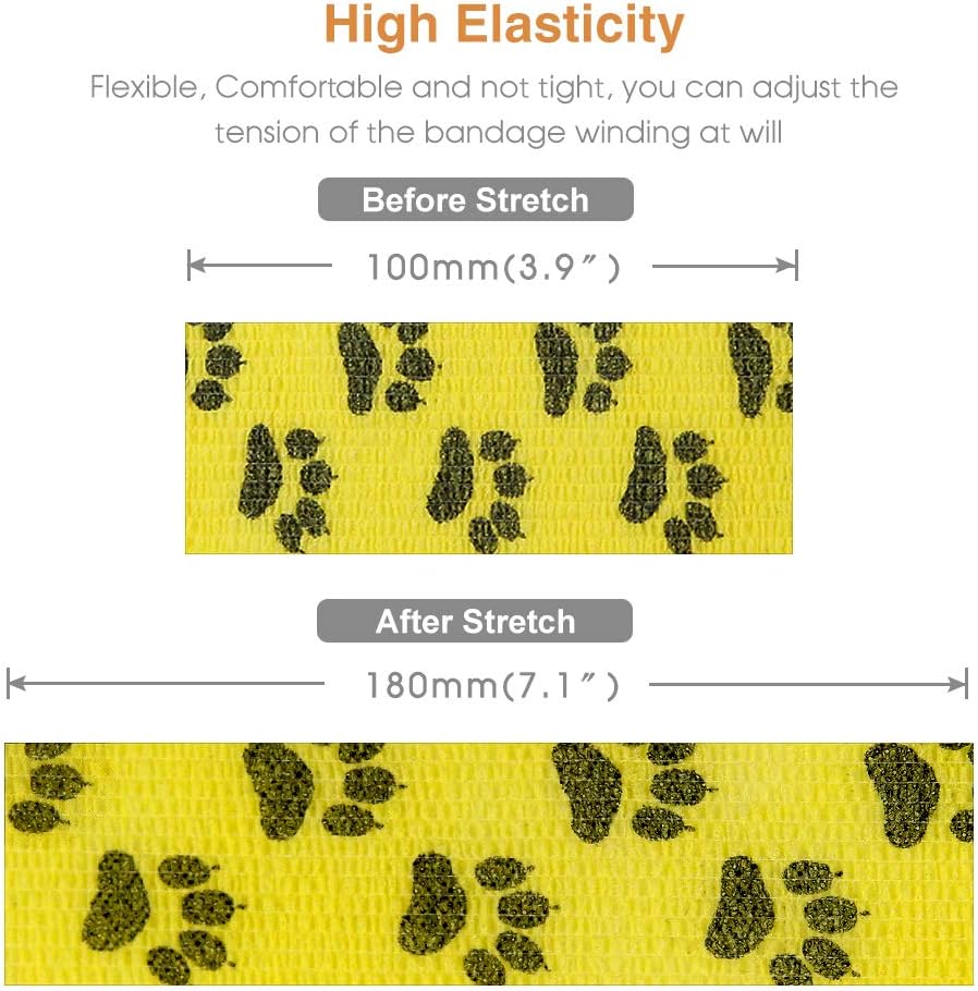 - ★ High Elasticity & Self Adhesive - Self adhesive bandage wrap ratio of over 180%, providing adjustable tightening force and excellent support. AUPCON Vet Wrap sticks to itself not the hair and skin.It is great for applications where adhesive is not wanted. It’s great for Great for emergency aid kits and field activities.