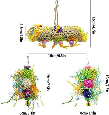 EBaokuup 3Pack Bird Chewing Toys Foraging Shredder Toy Parrot Cage Bird Loofah Hanging Toy for Cockatiel Conure African Grey Parrot