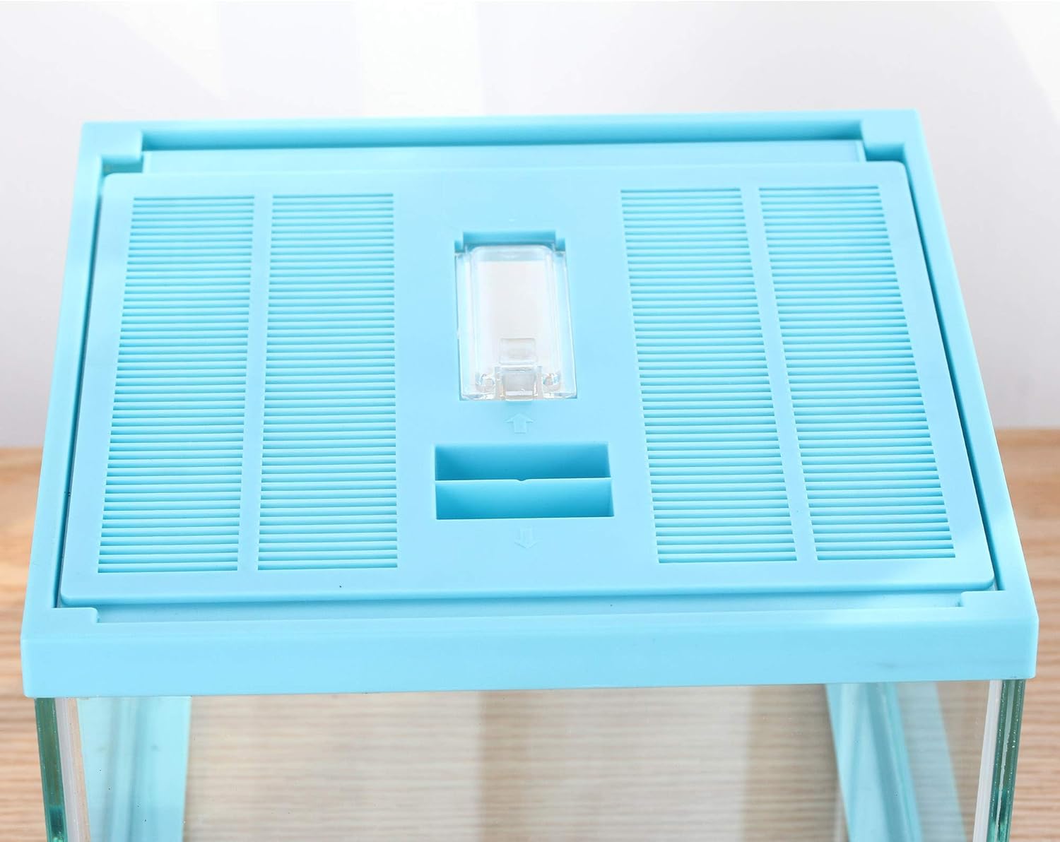 - Glass tank and pale Blue cover. Single-door for 360 viewing, visual accessibility