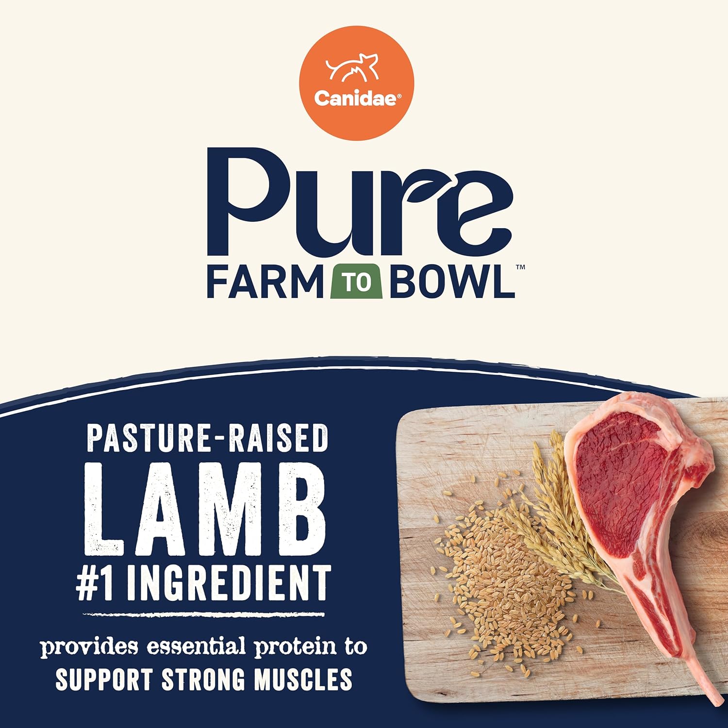 CANIDAE Pure Farm to Bowl Pasture-Raised Lamb & Brown Rice Dog Food, Adult Dog Food, 4lb