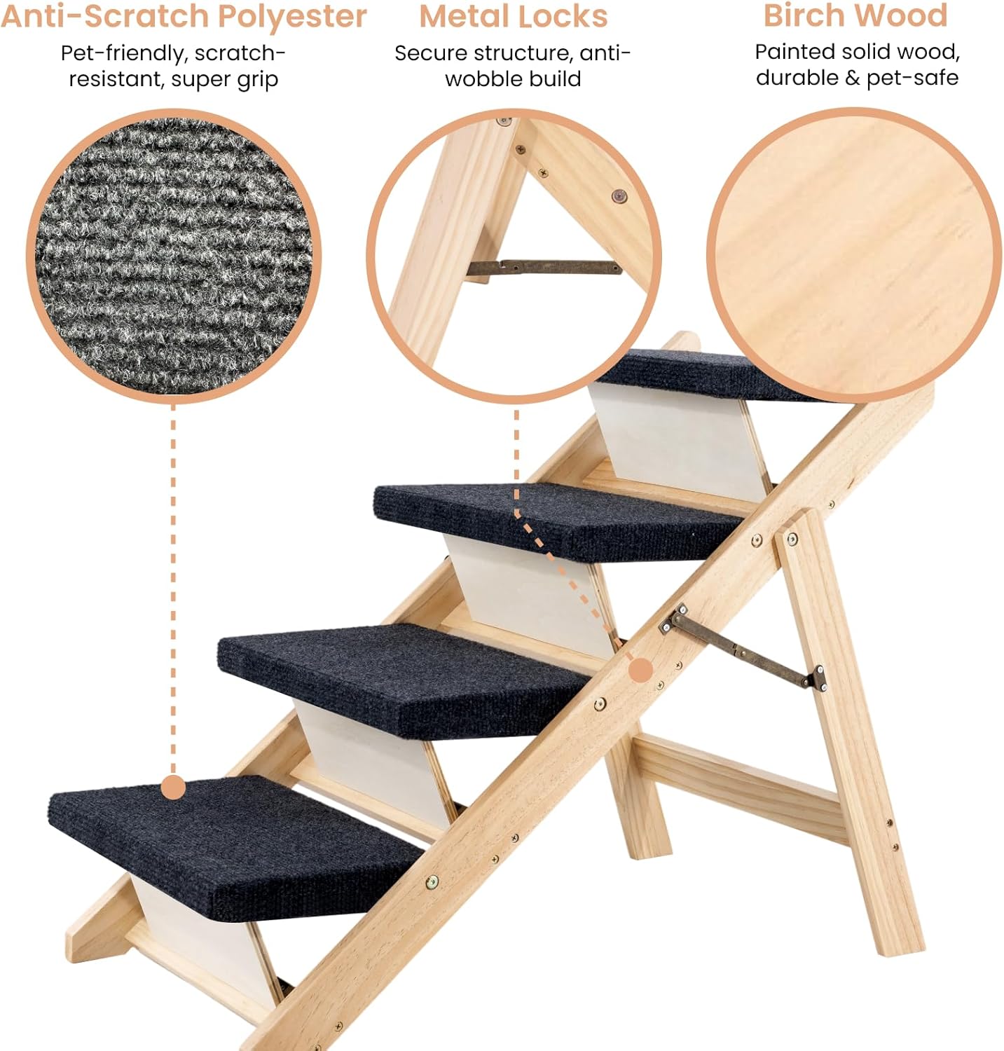 MEWANG Wood Pet Stairs & Ramp for Small/Medium Dogs and Cats, Aging Pets – 3-in-1 Foldable, Portable, Non-Slip Pet Ladder for Tall Beds, Couches,Cars–Holds Up to 220 lbs (31.5" L x 17.2" W x 25.0" H)