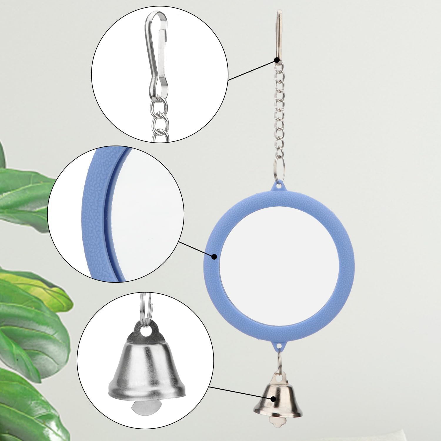 Hypeety Pet Bird Mirror with Bell Interactive Parrot Toy Bird Cage Mirror for Cockatiel Parakeets Canaries Budgie (Blue)