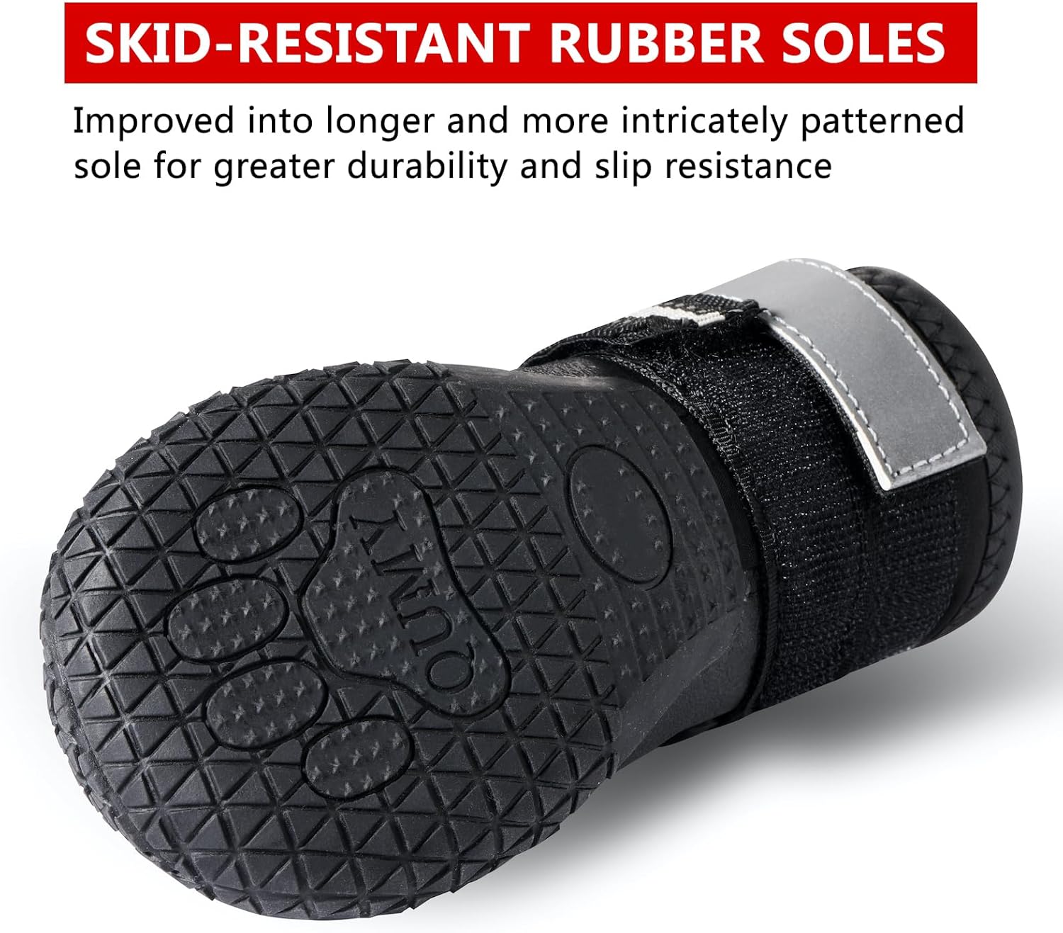 - RUGGED: Tough anti-slip sole of dog boots provides stability and traction, protection from sharp thorns and hot pavement.