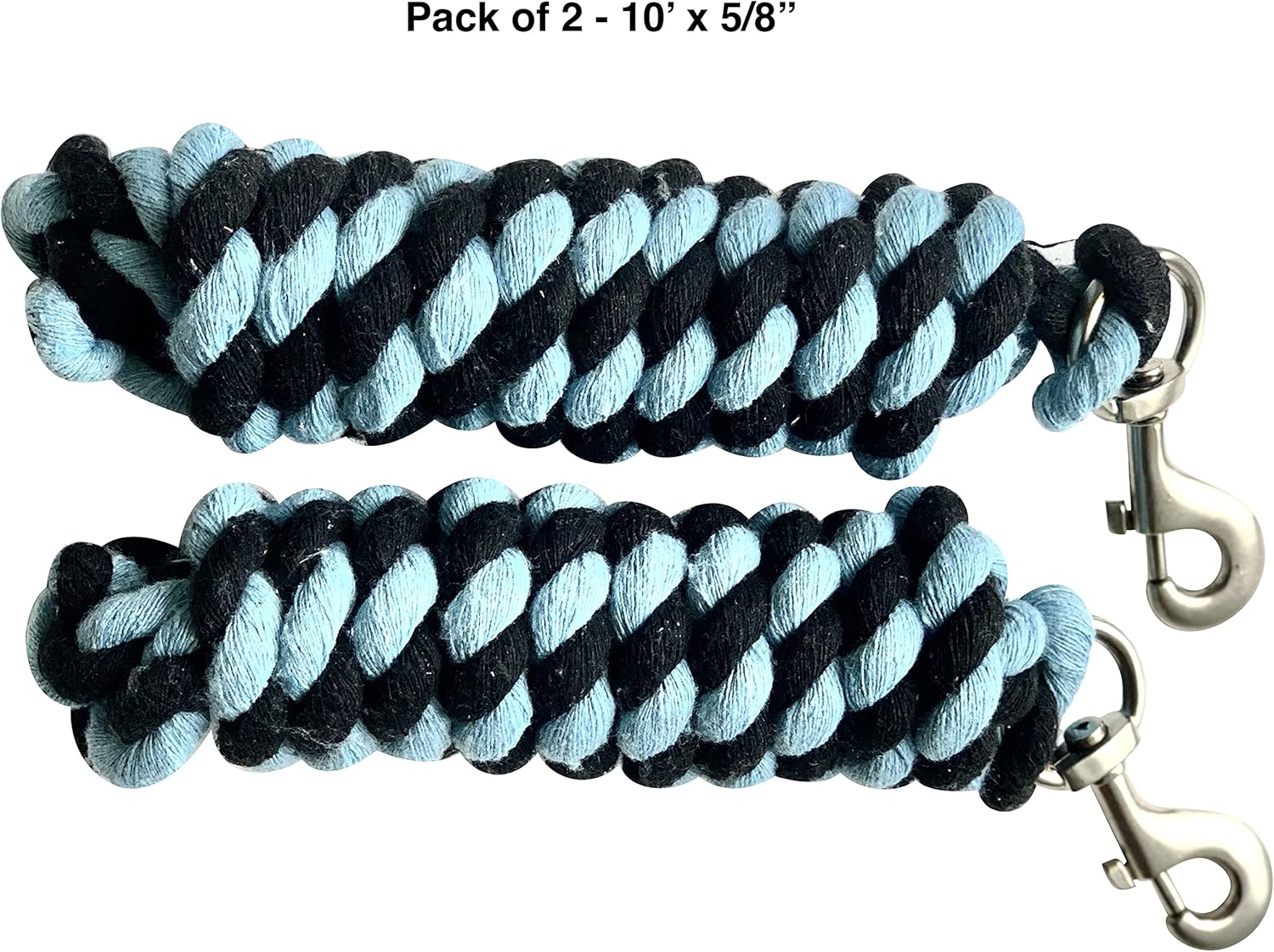 • TWIN PACK & AVAILABLE IN MULTIPLE COLORS - Our 10 feet cotton lead rope comes in pack of 2 and are available in 4 combo colors: Turquoise -Brown, Sky Blue – Black, Hunter Green -Tan and Navy - Burgundy.