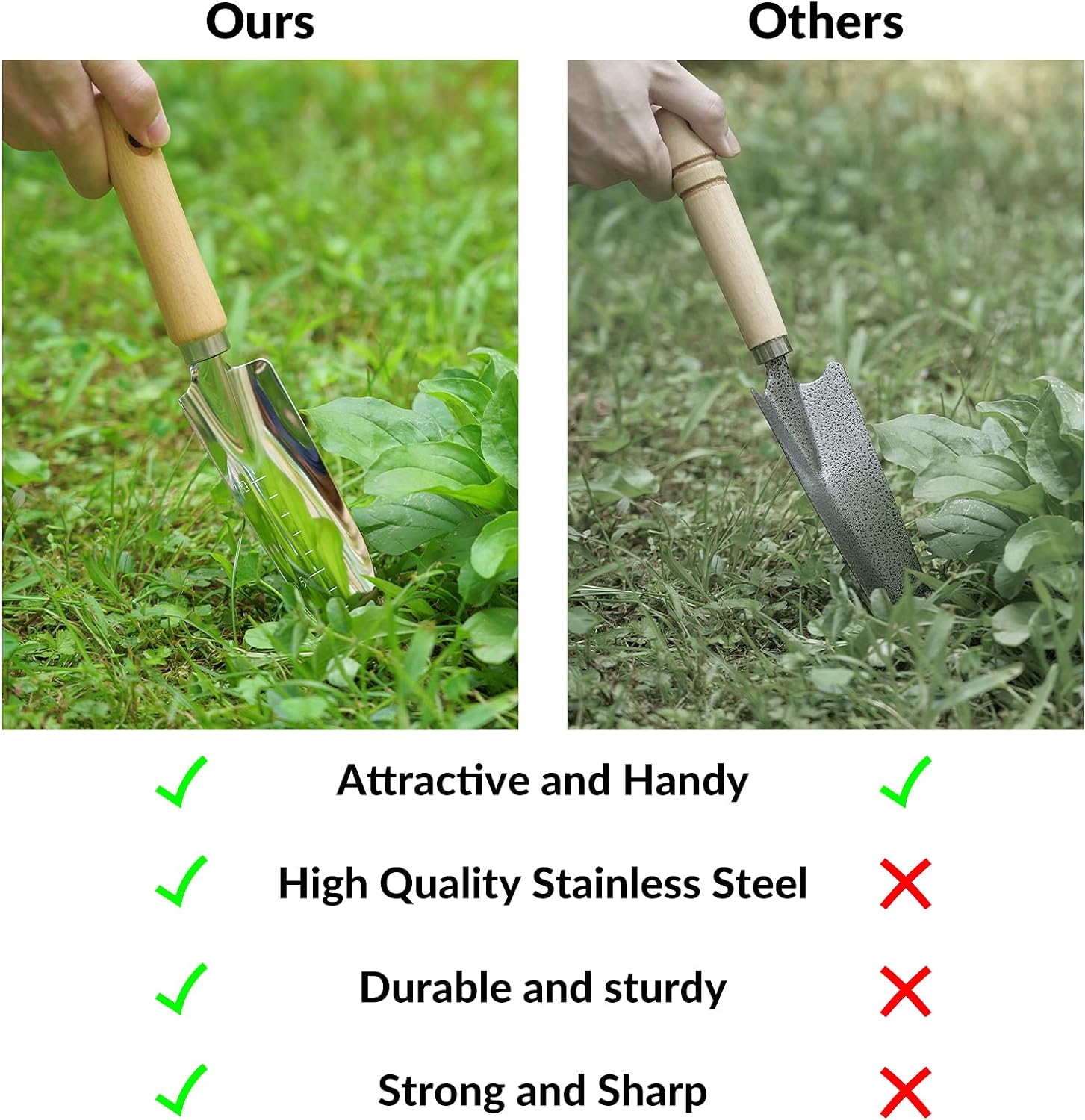 • Heavy-Duty Materials: Our garden weeding tools are made with high-quality stainless steel, which is a heavy-duty, corrosion-proof material hard to break or deform. The tools are designed with ergonomic wooden handles to ensure better grip and long-lasting, reliable use!