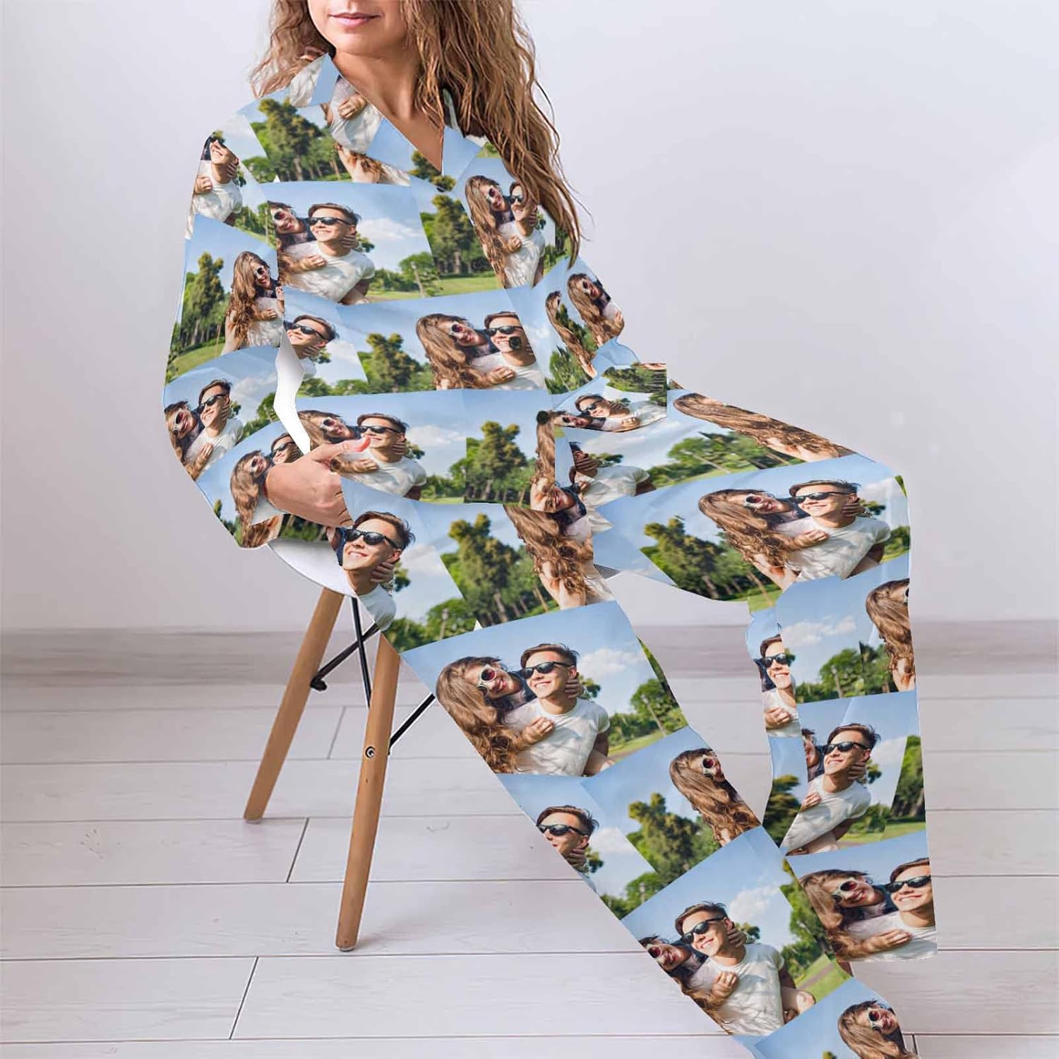 MyPupSocks Custom Face Pajamas for Women Set, Personalized Photo Long Sleepwear XS-XXL