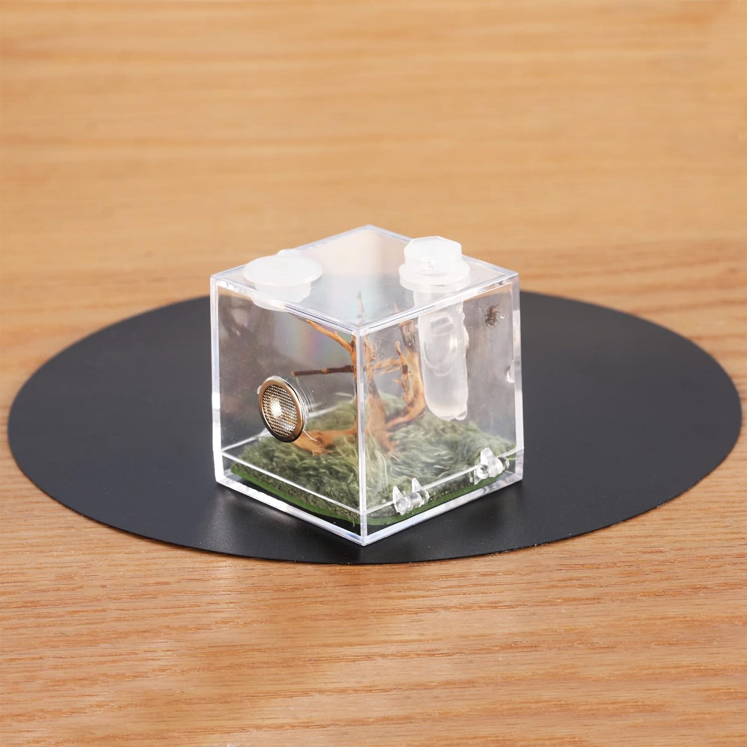 crapelles Jumping Spider Micro Middle Habitat, Small Pet Insect Breeding Box, 360 Degree Transparent Reptile Cage, Acrylic Case Mini Carrier for Amphibians, Feeding Container Enclosure Accessories