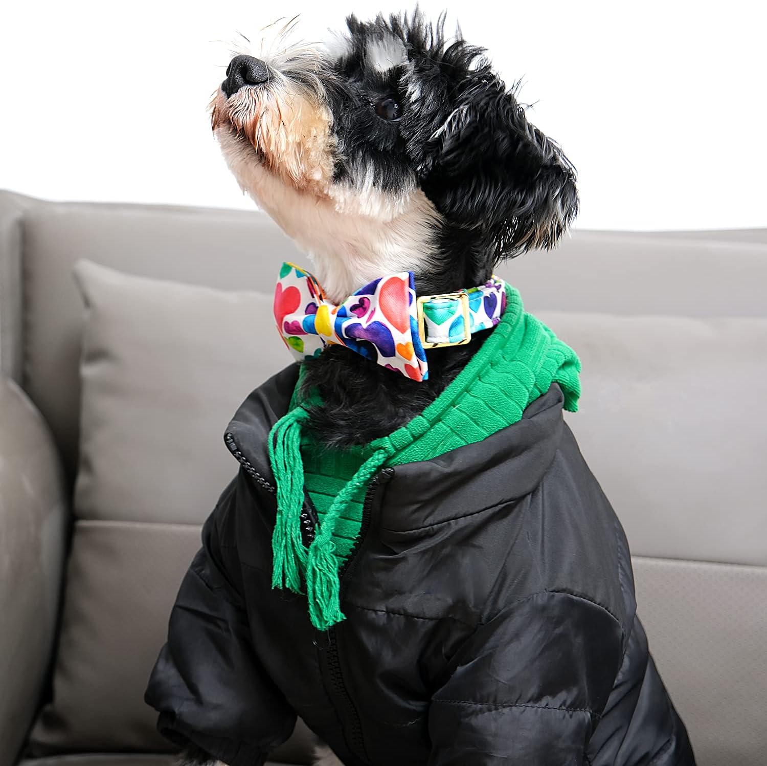 - [DIMENSION]:Bowtie-M=2.36" x 4.5", Collar-M=1" x 13.5"~22" The material is not stretchy, please measure the neck circumference of your dog/cat before buying.