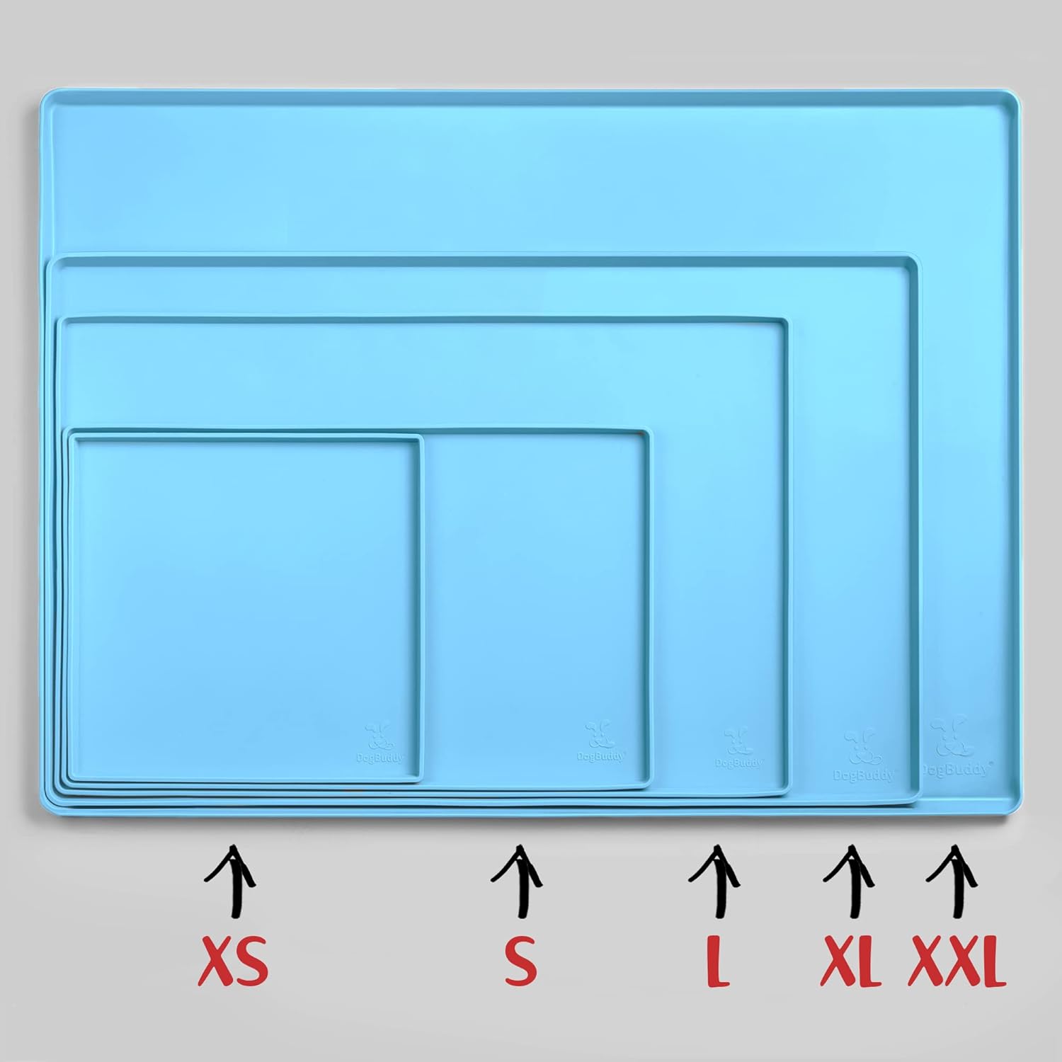 DogBuddy Dog Food Mat – Waterproof Dog Bowl Mat for Food and Water, Silicone Pet Feeding Mats for Floors, Non-Slip Placemat with High Edges for Dogs Bowls, Puppy Essentials (XL: 28" x 18", Maya)