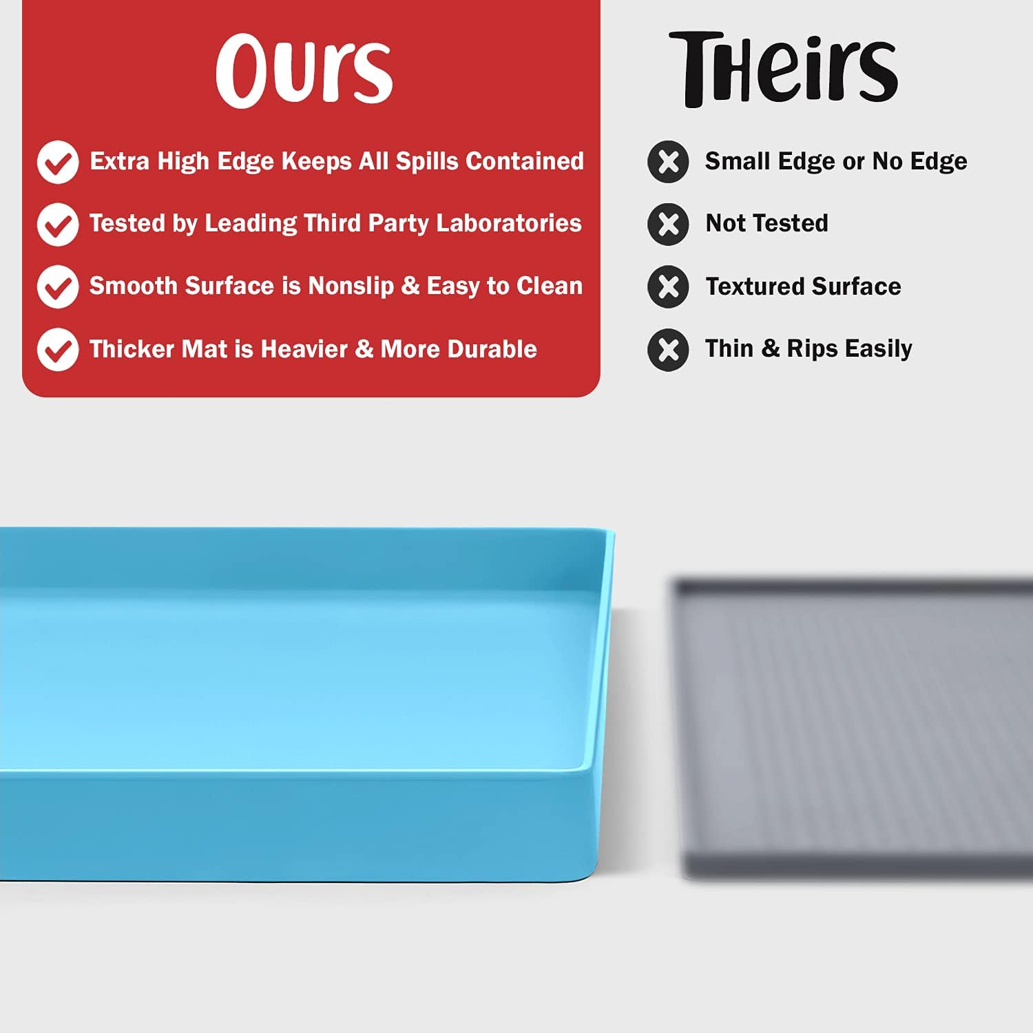 • Less Mess & Less Stress: Super high edge (0.6”) of DogBuddy Dog Food Mat keeps the spilled food and water on the mat and away from your beautiful floor. Silicone is naturally 100% waterproof, so what happens on the mat stays on the mat.
