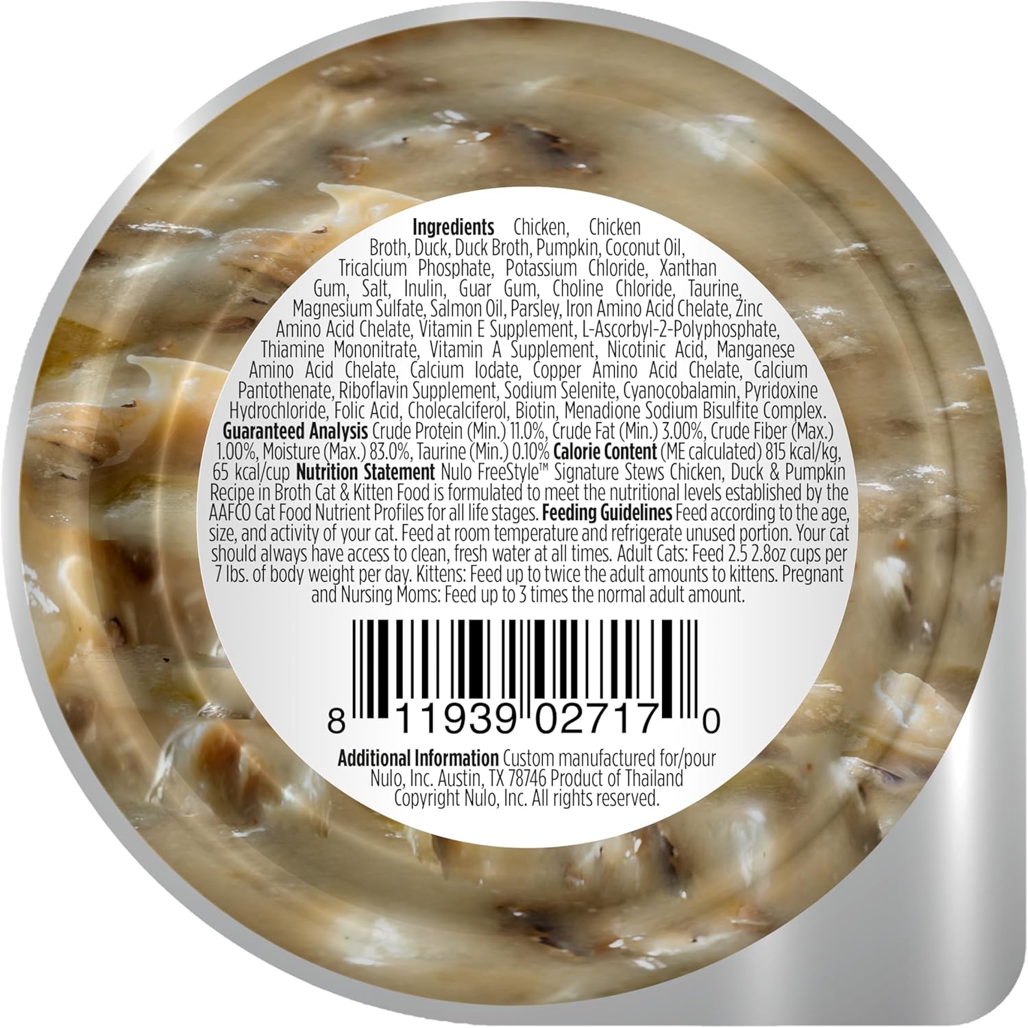 - CHICKEN, DUCK, & PUMPKIN RECIPE - Nulo Freestyle Cat & Kitten Wet Cat food Signature Stew helps your cat or kitten thrive with a completely balanced recipe containing no added minerals or preservatives. Pack of 24, 2.8 Oz pouch.
