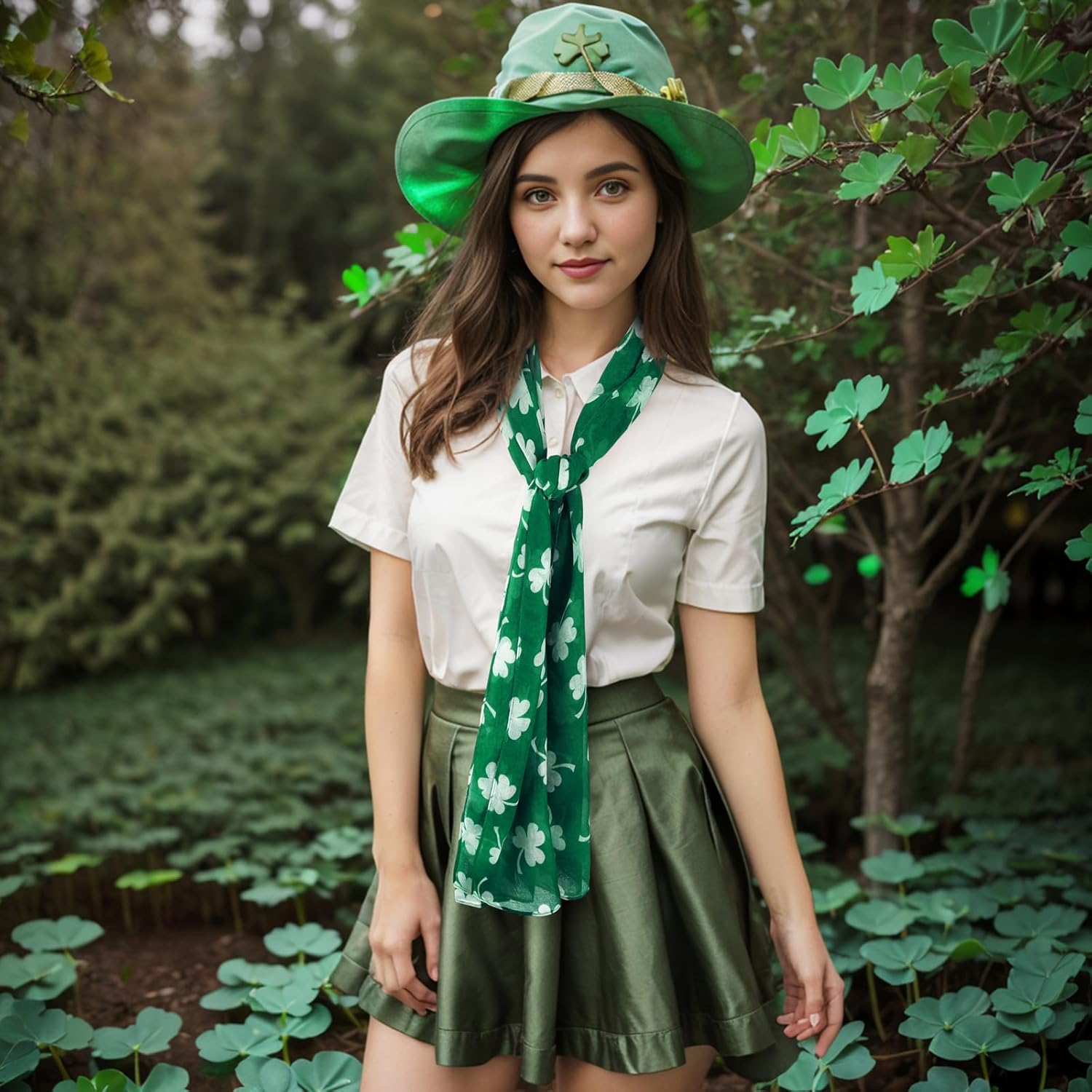 - The green shamrock scarf is a great accessories for daily outfits. The lightweight wrap scarfs can be worn around hair, head, face, neck, shoulder or waist. The fashion & elegant for handbag or hat are funny and adorable.