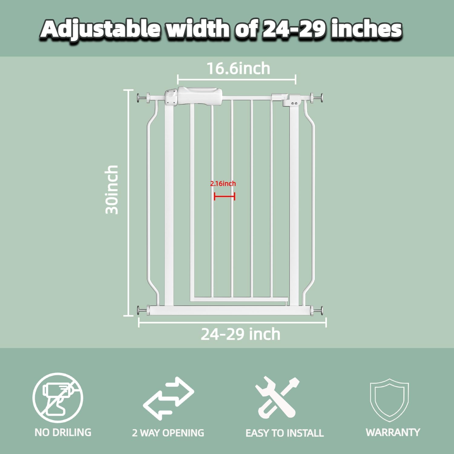 TSAYAWA Narrow Baby gate Baby Safety Gate 24.02-29Inch Auto Close Child Gates, Pressure Mounted Gate for Stairs & Doorways, Indoor/Outdoor Heavy-Duty Pet Gate for Toddlers, Dogs, White