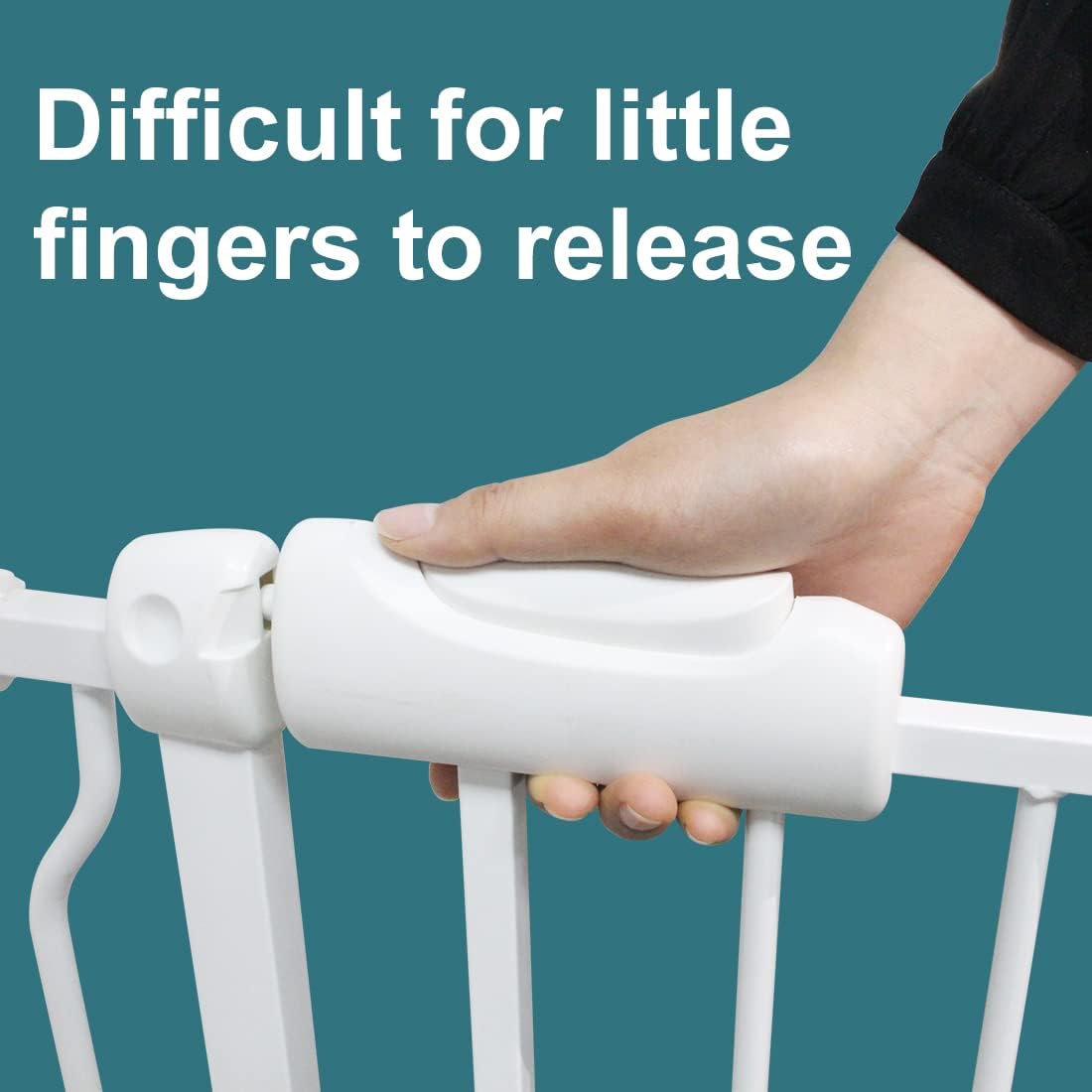 - 【GREAT FOR MOST OPENINGS】Our white gate is suitable for different doors! Choose for openings between 25"-76.37".We have different baby gates sizes,it doesn't include all extensions,the extension which you received denpends on your door opening.Whether your dooway is wide or narrow ,you can find the suitable baby gate or pet gate.And our large walk thru gate makes it easier to walk when holding the baby.