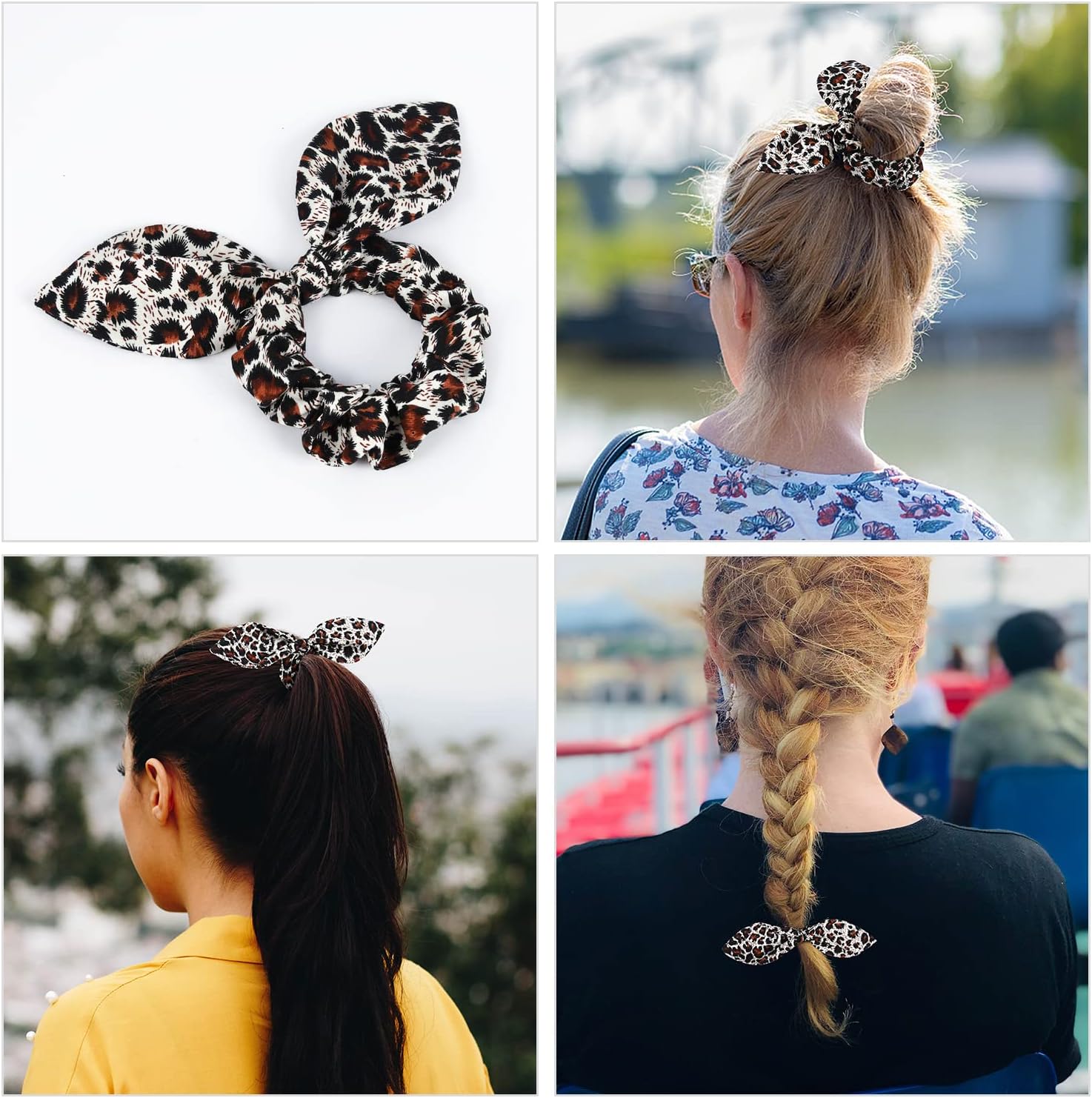 - Square Leopard Dog Bandanas Size- 15.7’’x15.7’’. The adjustable puppy bandanas girls fit dog neck size up to 16.5’’ (42cm). You can roll the cute dog scarf a couple of times to fit your dog & cat if it’s too large for your little dog. Please measure your dog’s neck before buying. Leopard bow scrunchie is one size fits all.