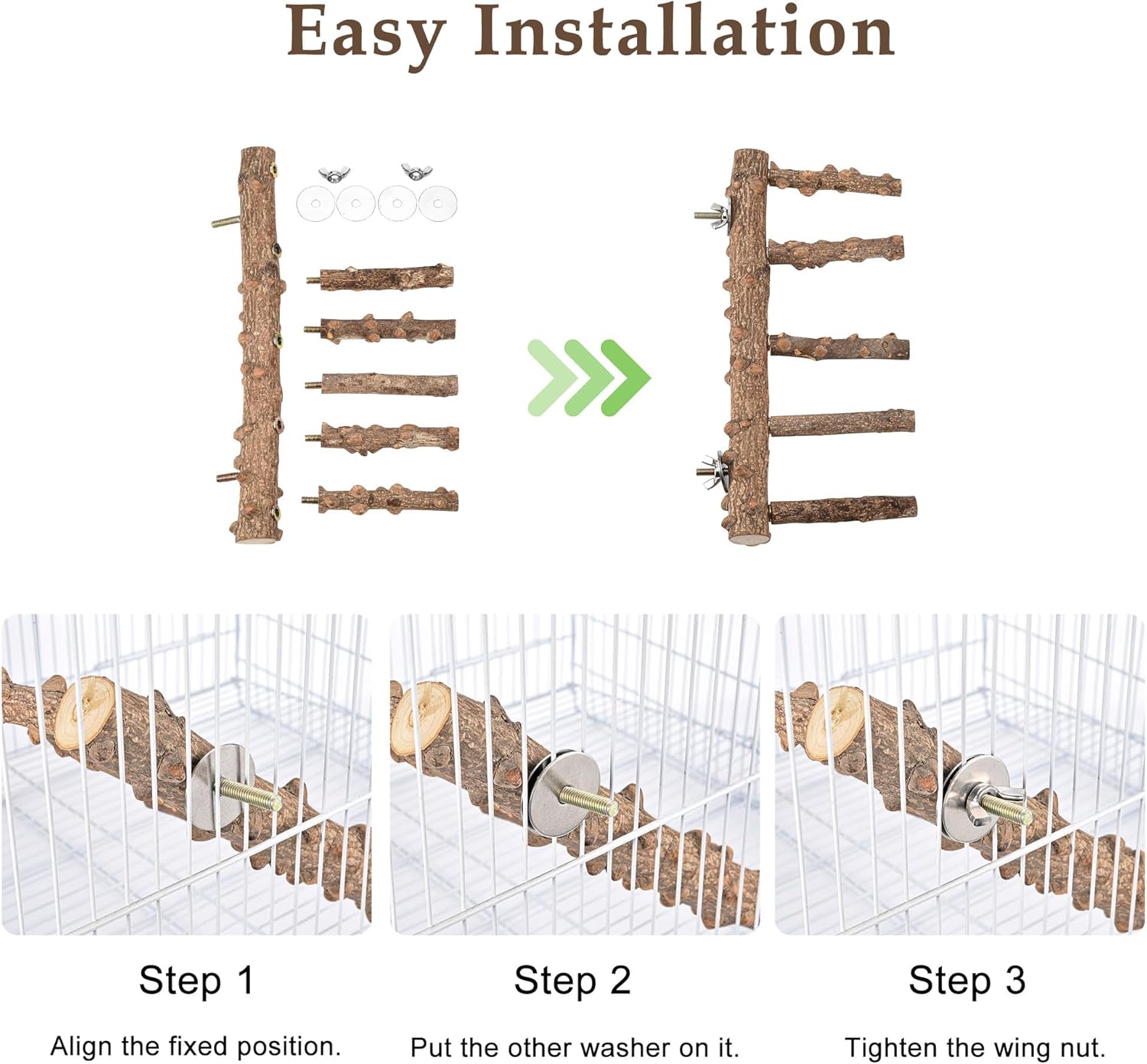 • 【Easy Installation】: The bird perches are suitable for all bird cages. Each bird perch stand toy is equipped with built-in bolt and wing nut, super easy to install and dismantle. Once intalled it will not fall off from the cage, safe for birds to rest or play on.