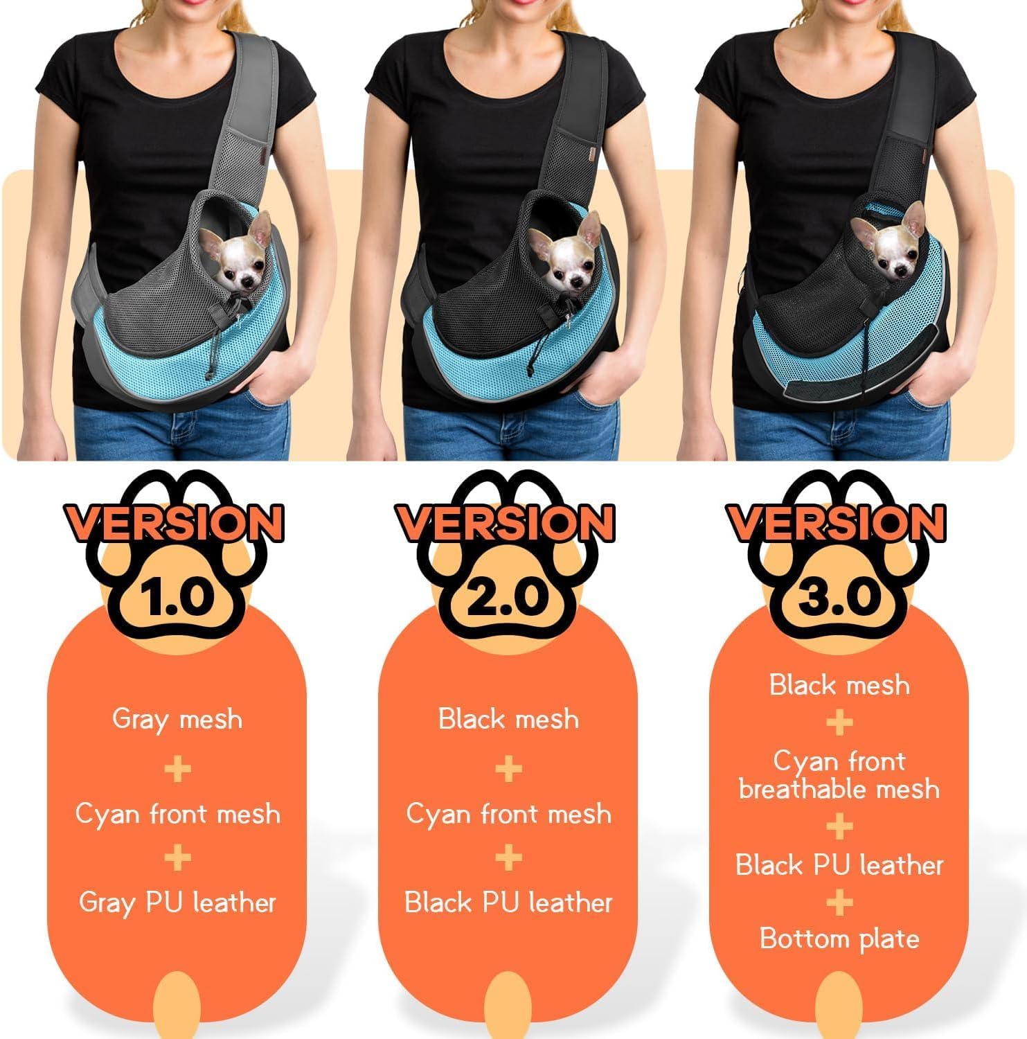 YUDODO Pet Sling Carrier for Small Dogs & Cats – Hands-Free Puppy Carrier with Safety Hook, Large Zipper Pocket, Soft Breathable Mesh, Adjustable Strap & Reflective Strip (Cyan 2.0 S)