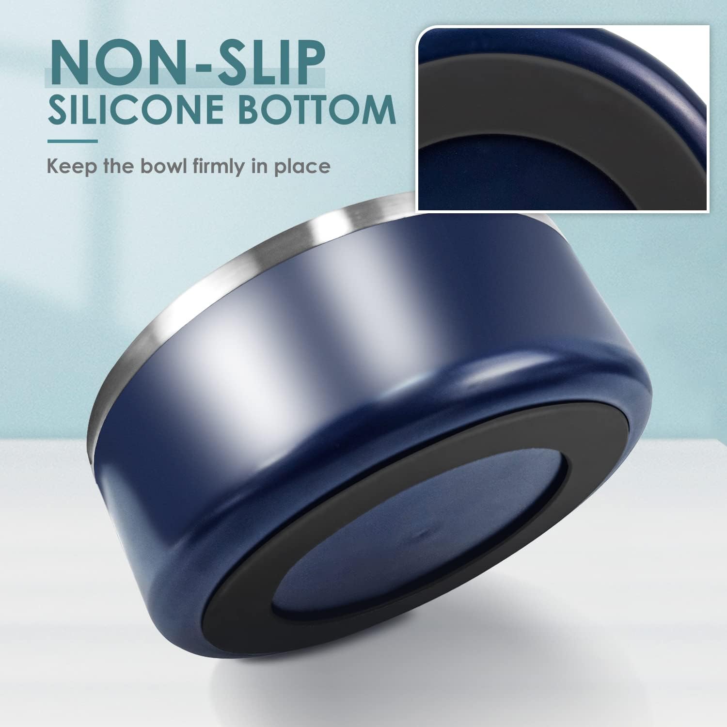 • STAINLESS STEEL DOG BOWLS-Our food and water bowls for dogs are made of double wall insulation and 304 food grade stainless steel, which is super long lasting, rustproof, scratchproof, environmental friendly. The outside of our non-slip dog bowls are made of Acrylonitrile Butadiene Styrene (ABS) for more durability.