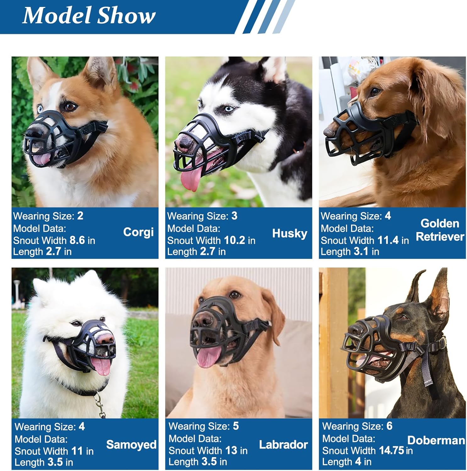 • SAFETY BASKET MUZZLE: Basket dog mouth cover design gives all-around snout protection, prevents biting, chewing, scavenging, and perfectly solve the problem that traditional muzzle can’t let dogs drink and being feed. Well used for safe public socialization, safe handling during vet visits, grooming or dog traveling