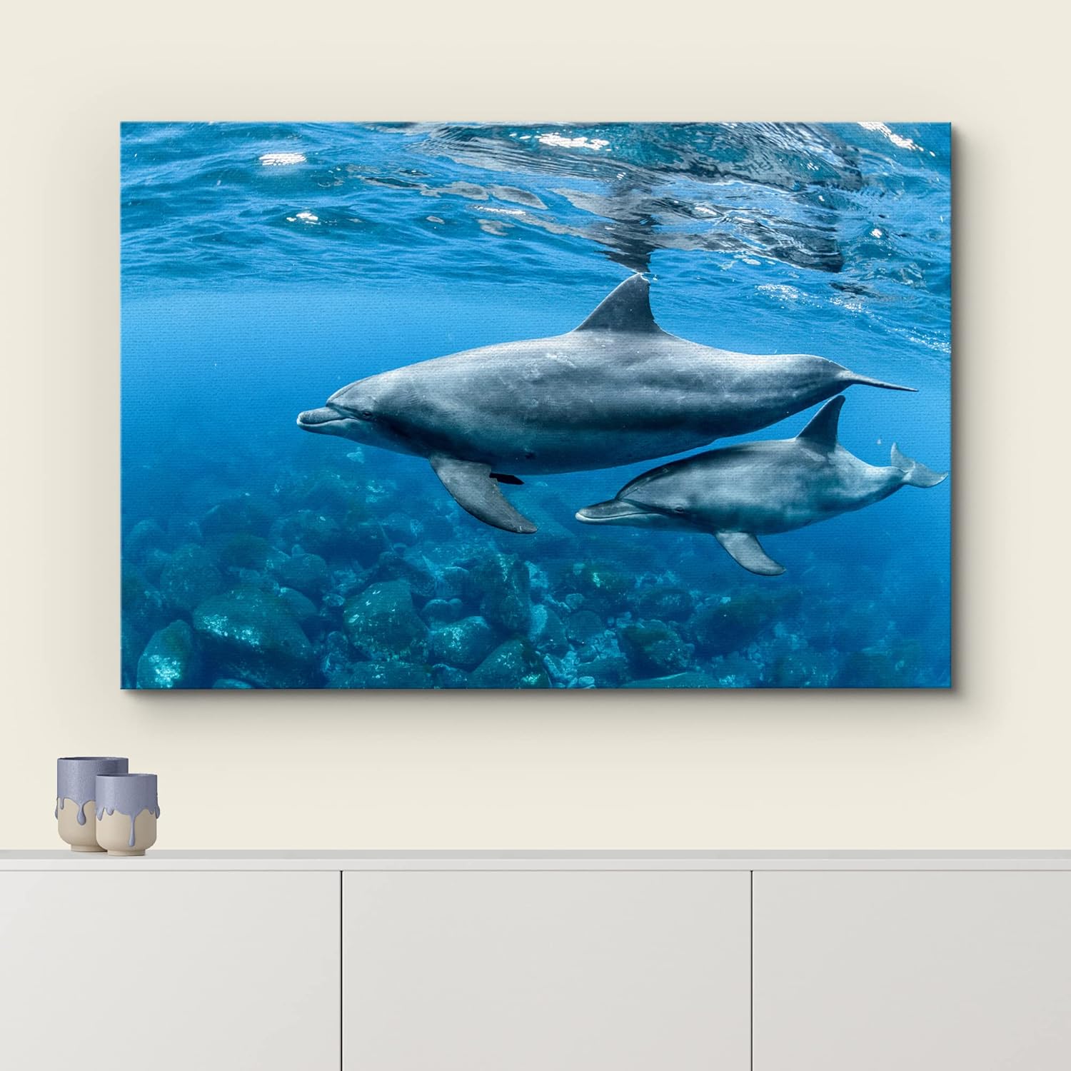 wall26 Canvas Print Wall Art Tropical Ocean Sea Underwater Dolphin Duo Nature Animals Photography Realism Rustic Scenic Landscape Wilderness Earth Colorful for Living Room, Bedroom, Office - 16"x24"