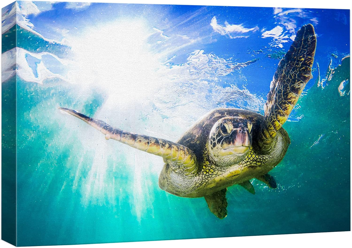 wall26 Canvas Print Wall Art Sunlight Tropical Ocean Underwater Turtle Nature Animals Photography Realism Rustic Scenic Landscape Wilderness Earth Colorful for Living Room, Bedroom, Office - 24"x36"