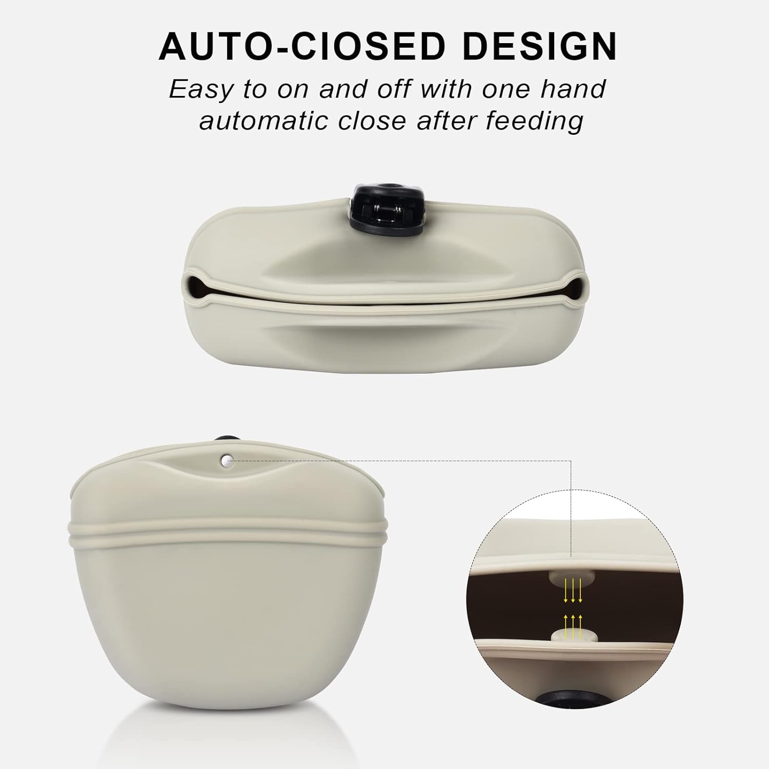 • 🐕Silicone Dog Treat Pouch🐕 - The silicone dog treat pouch is made of food grade silicone,it can contact dry and wet food directly,safe and healthy. It’s easy to on and off with one hand, automatic close after feeding.With upgrated clip,It is easy to carry,not easy to fall off.Dish washer safe and easy to clean,The large opening design and soft silicone material make the pet pouch easy to reverse to clean the inner easily and thoroughly.