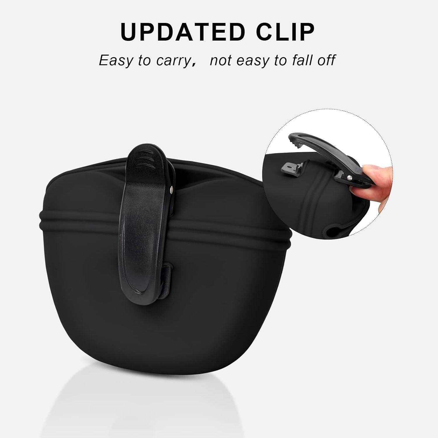 • 🐕Easy To Use🐕 - The silicone dog treat pouch is eay to use.The design of magnetic buckle closing for easy to on and off with one hand, automatic close after feeding.With the upgrated clip,you can clip to pockets、belt loops or package,it's convient to train or walk pet outside.The clicker training for dogs is easy to use, simple push button with distinct clicking sound, Train your pet just by simply pressing the clicker and command.