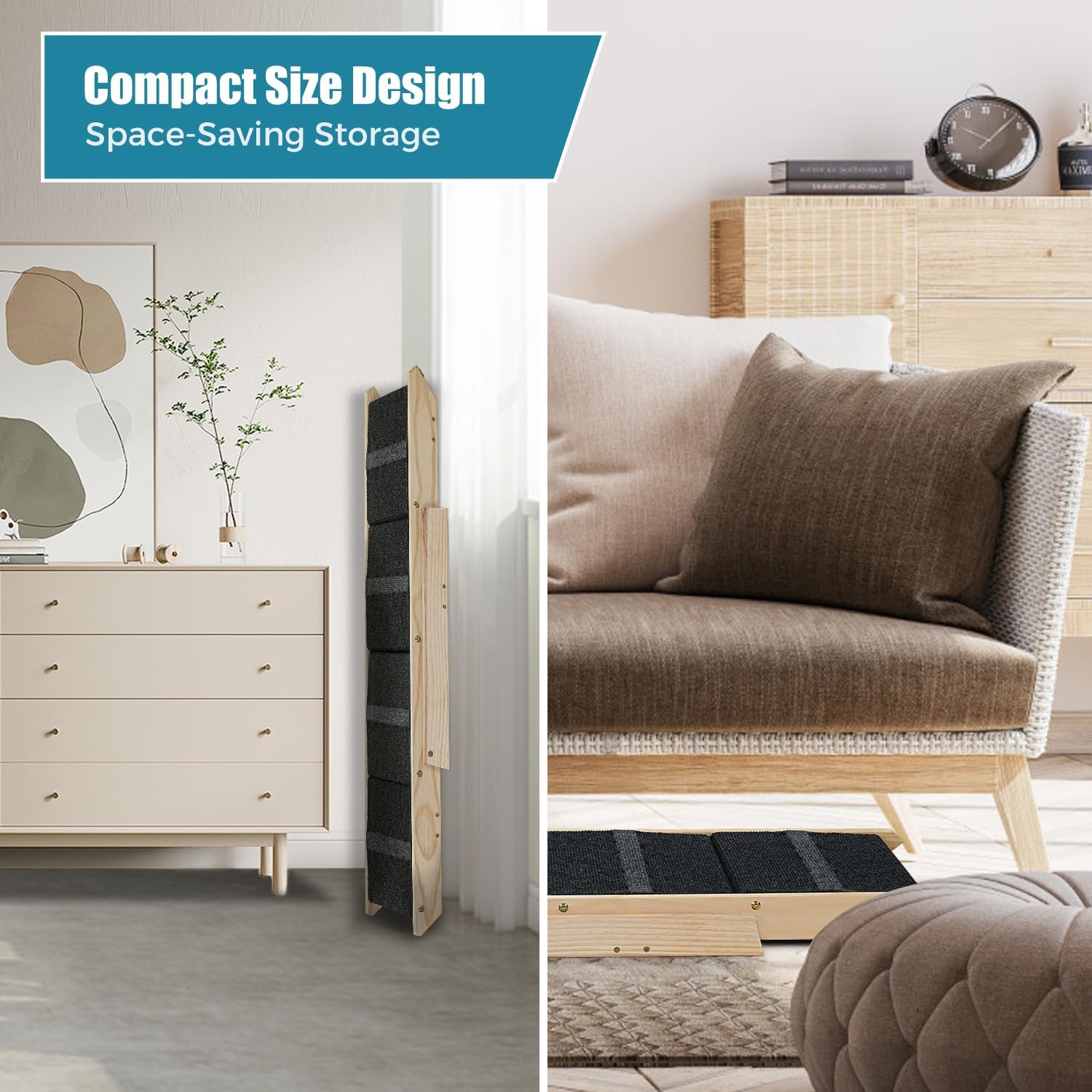 - STURDY AND SAFE: Sturdy Pine Wood construction for strong support. The ramps are independently safety tested and rated to support pets up to 150 Pounds.