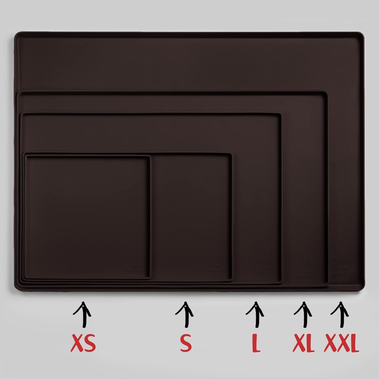DogBuddy Dog Food Mat – Waterproof Dog Bowl Mat for Food and Water, Silicone Pet Feeding Mats for Floors, Non-Slip Placemat with High Edges for Dogs Bowls, Puppy Essentials (S: 19" x 12", Coffee)