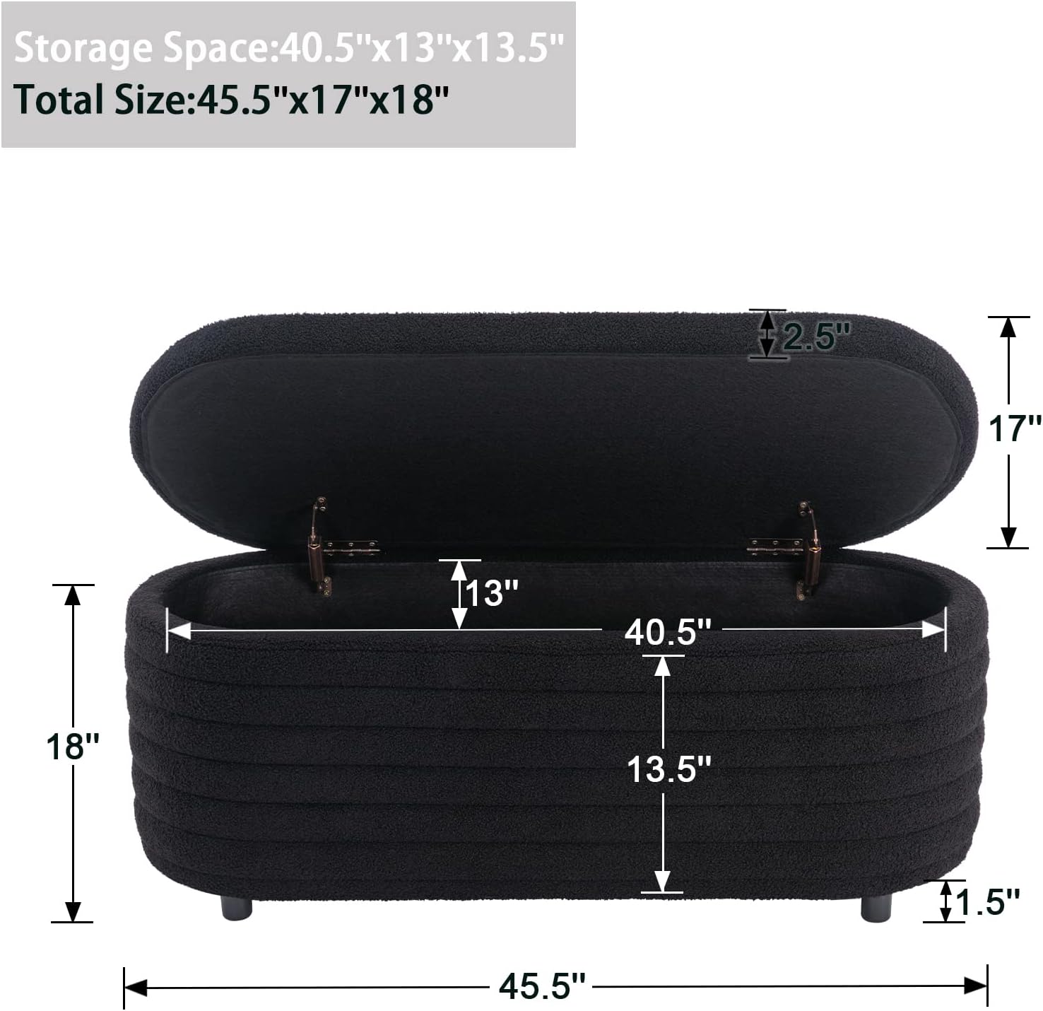 Storage Ottoman Bench Upholstered Fabric Storage Bench End of Bed Stool with Safety Hinge for Bedroom, Living Room, Entryway (45.5-inch, Black)