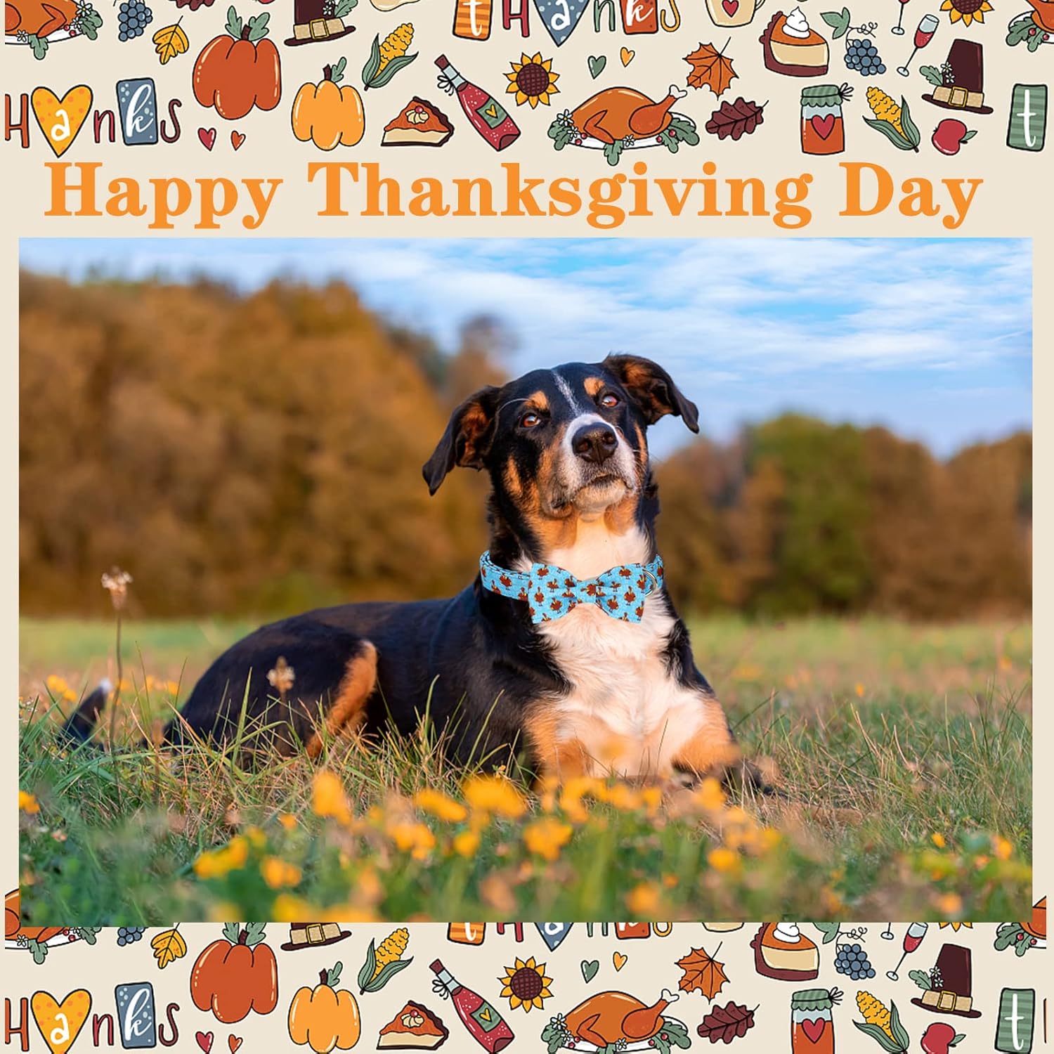 - ♥ Removable Bow Tie ♥ : The bow tie of the Thanksgiving dog collar is detachable. The tie has two elastic band , pass the tie through the dog collar or tie it to any other collar. You can DIY your dog collar.
