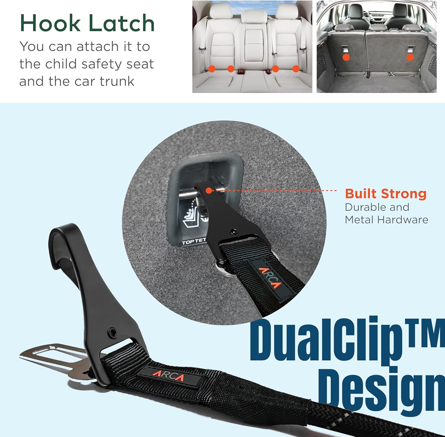 • DUAL BUCKLE SECURITY: a seatbelt buckle for easy attachment to car seats and a sturdy metal hook latch for versatile use in the front seat, back seat, or trunk, ensuring optimal safety for your pet.