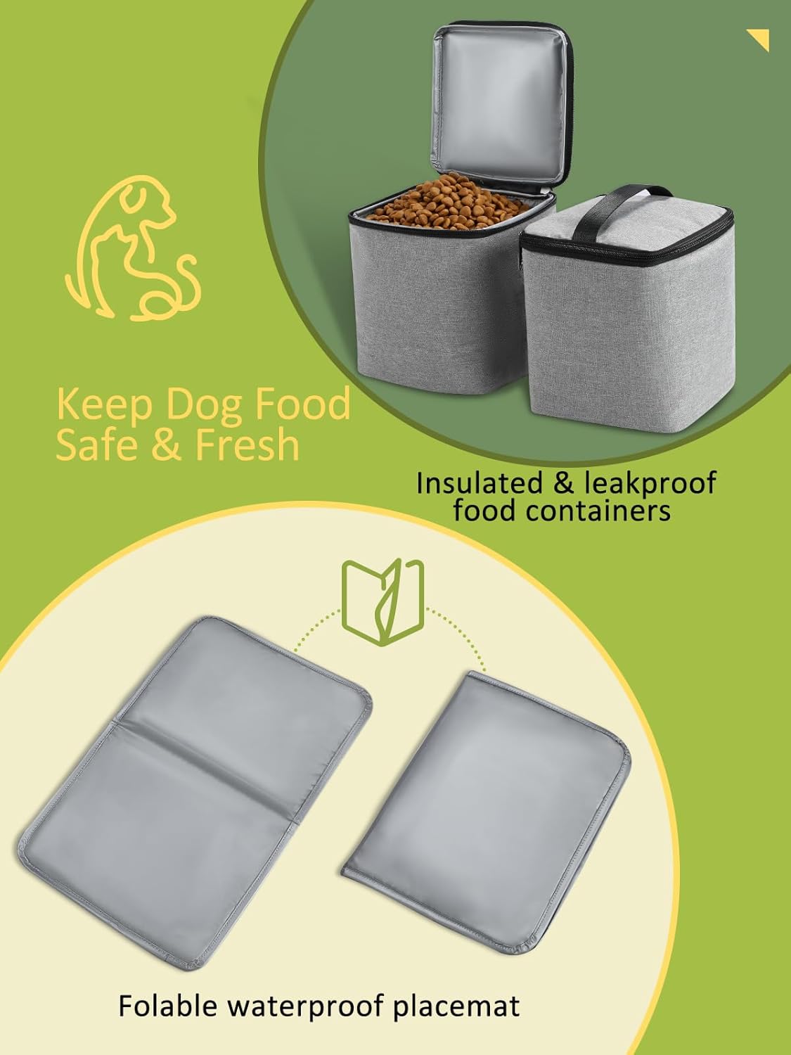 - Make Dog Feeding Easier: Two premium silicone food/water bowls and a waterproof placemat let you feed your pup easily without making a mess. When collapsed, the lightweight silicone bowls with carabiners are easy to stash inside the dog overnight bag, attach to the dog bag exterior, or clip onto your dog’s collar.