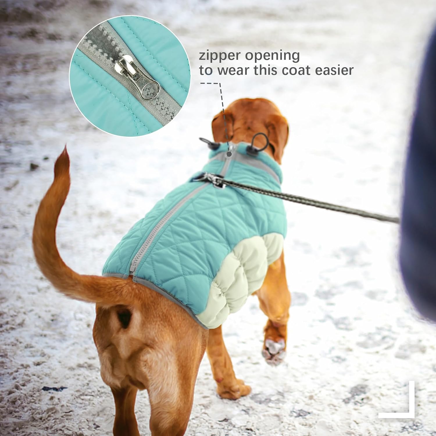 FUAMEY Dog Coat for Medium Dogs,Waterproof Dog Winter Jacket with Harness Built in Puppy Cold Weather Coats Reflective Pet Vest with Zipper Warm Fleece Dogs Snowsuit Windproof Mint Green M