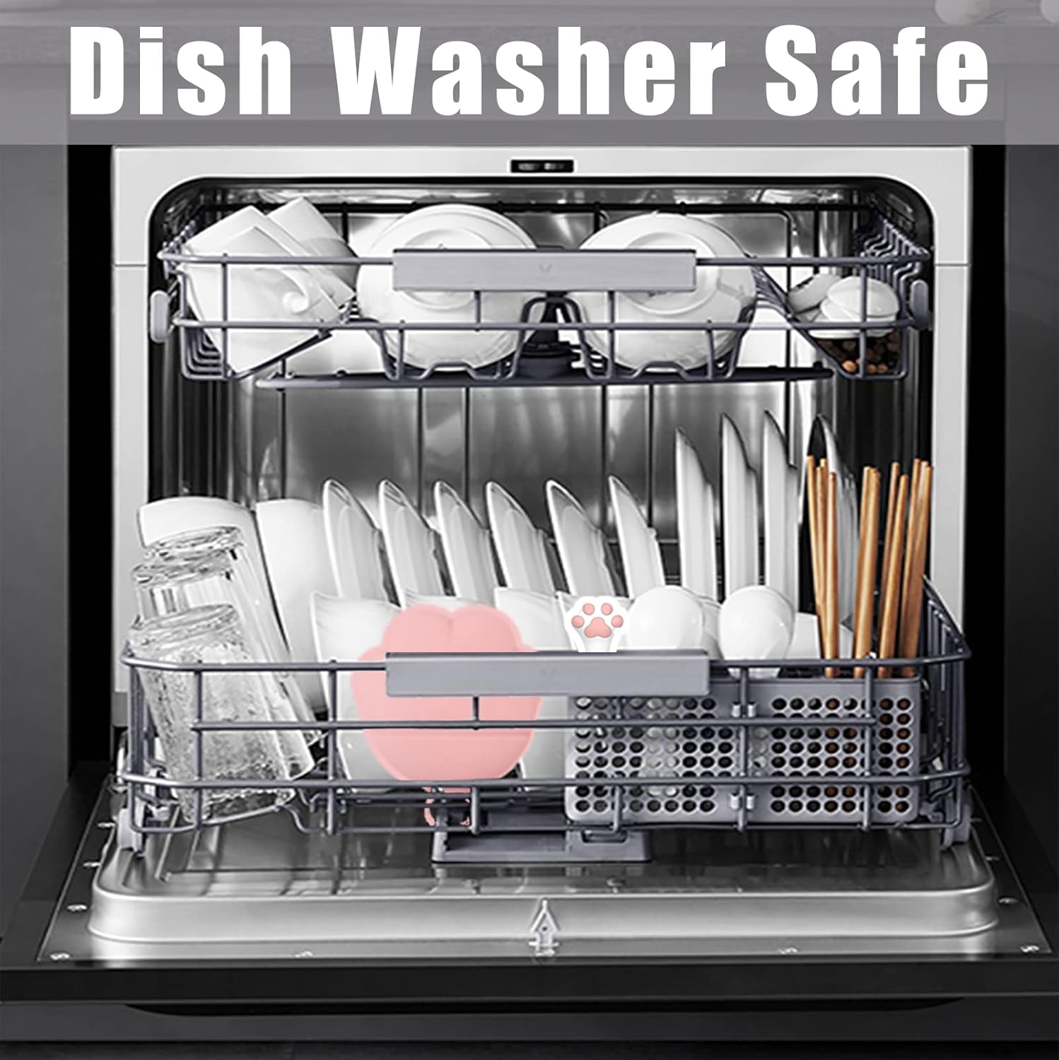 Meow&Woof Cat Food Can Lid and Spoon, BPA Free Silicone Cover for Animal Wet Food Storage, Reusable Topper for 3/5 /5.1/5.5/12/ 13 oz Cans Refrigerator Fresh Wash Machine Apply (2Pack)