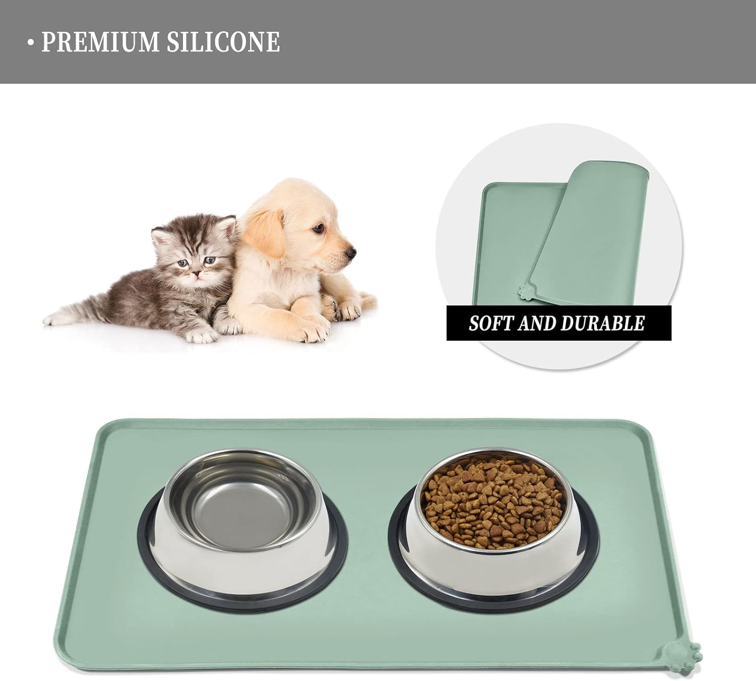 - Anti-slip design: our non-slip pet feeding mat ensures stability for your pet's bowl, preventing any water stains or spills on the floor. Enjoy peace of mind when feeding your pet, knowing that their food stays in place