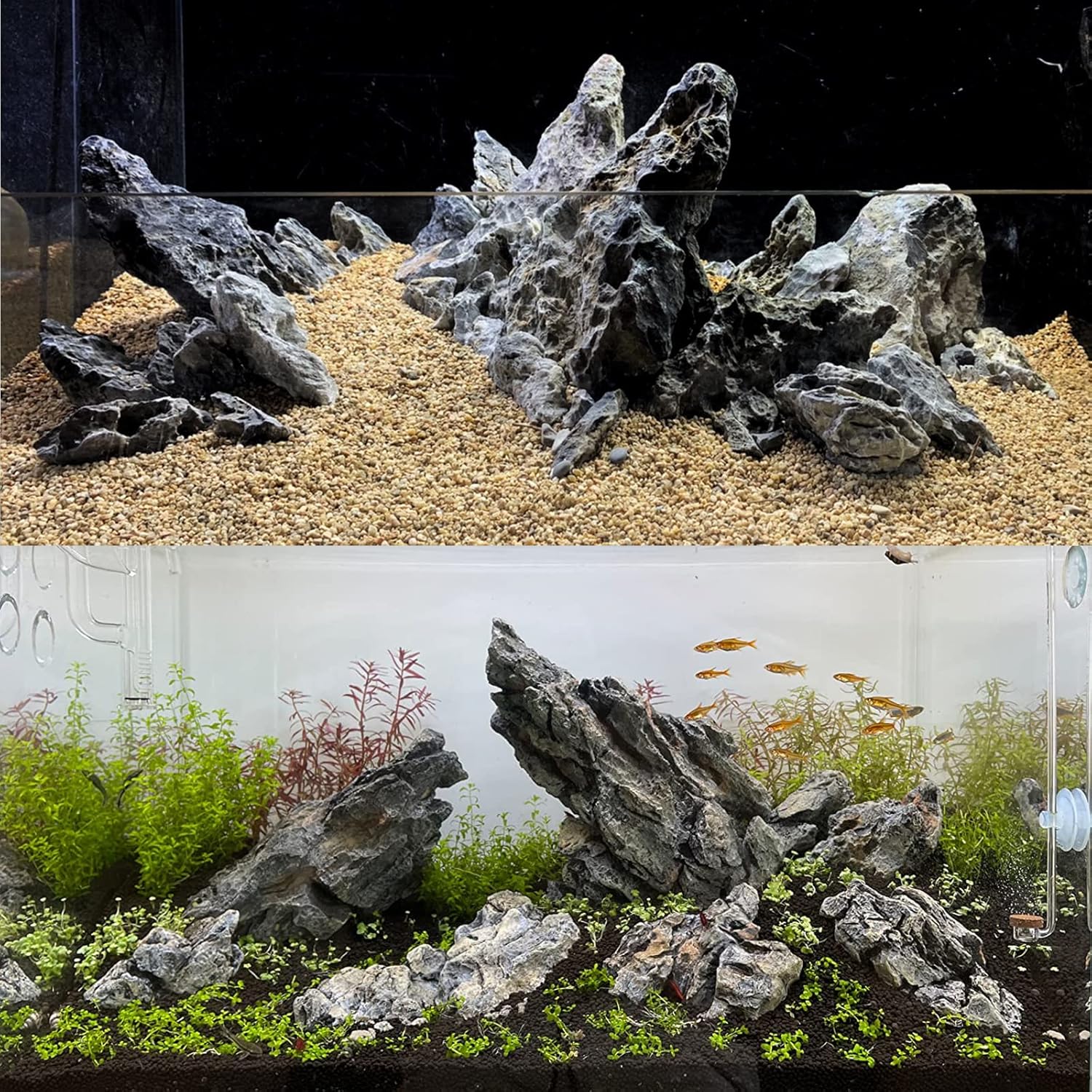 • Gift-Worthy— These fish tank rocks can be paired with KINGRUI's Natural Slate Rocks, Seiryu Stones, Dragon Stones,River Rock,Pagoda Rocks and Turtle Platforms to create stunning aquascapes or outdoor rockery landscapes. They enhance any environment and make a thoughtful gift for pet lovers